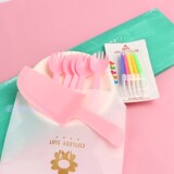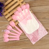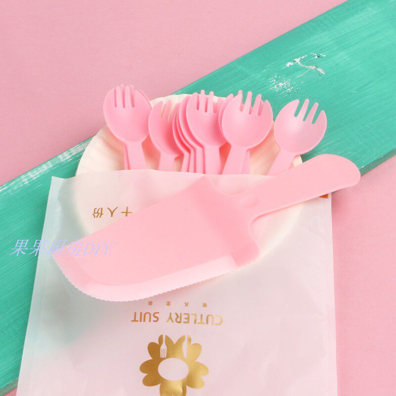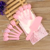 Посуда, пластиковый одноразовый розовый комплект