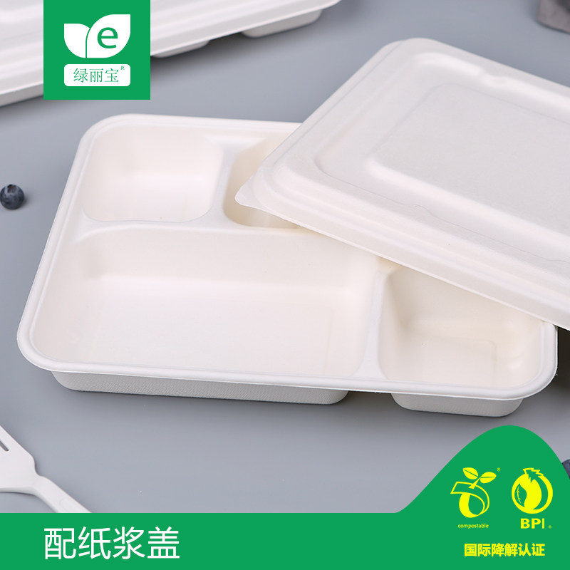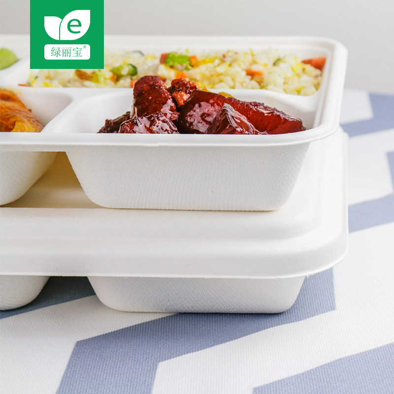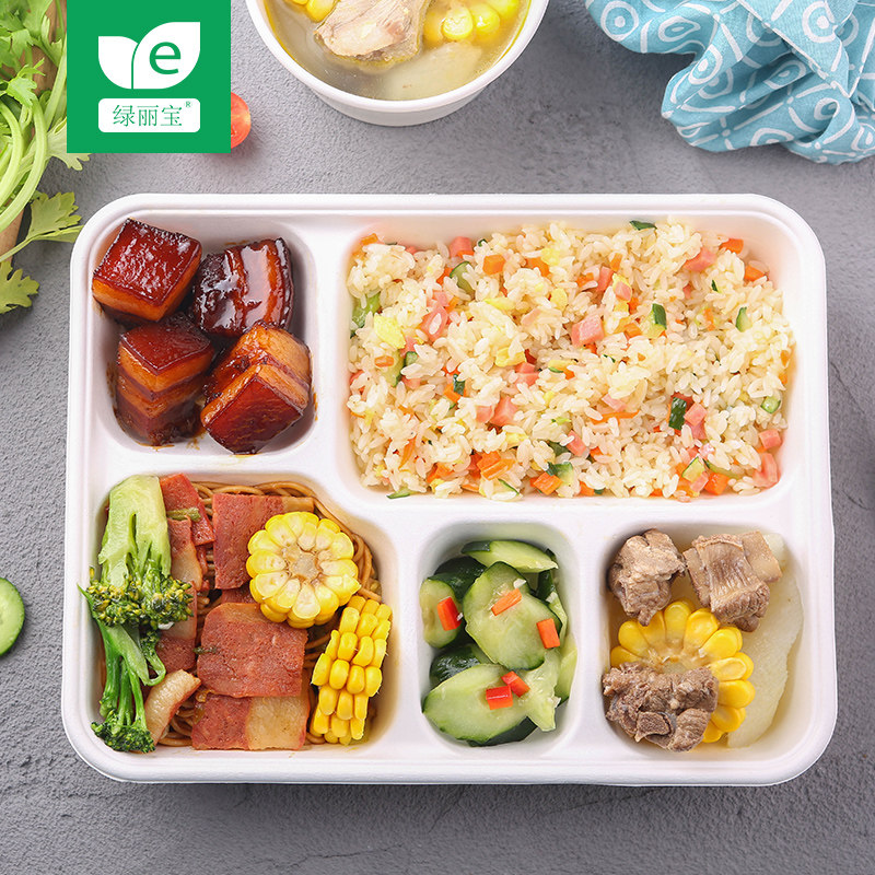 绿丽宝 One -Time Five -Grid Lunch Box Takeaway Pack Box High -End Разлагаемая фаст -фуд Толстое блюдо для самолетов Bento Box