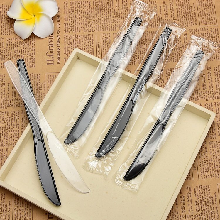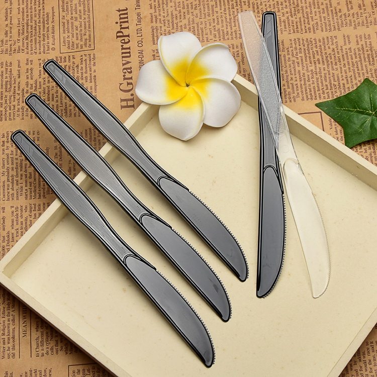 Одноразовый нож для ножа сгущенной черный пластиковый стол.