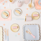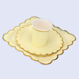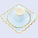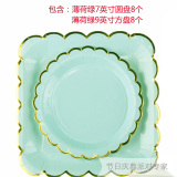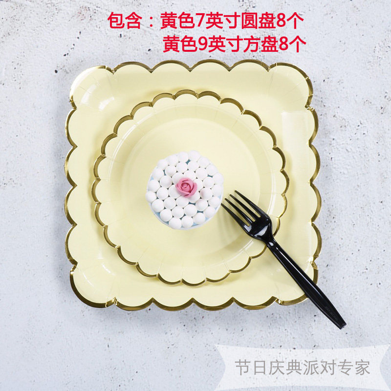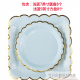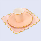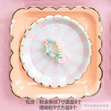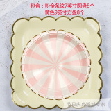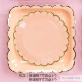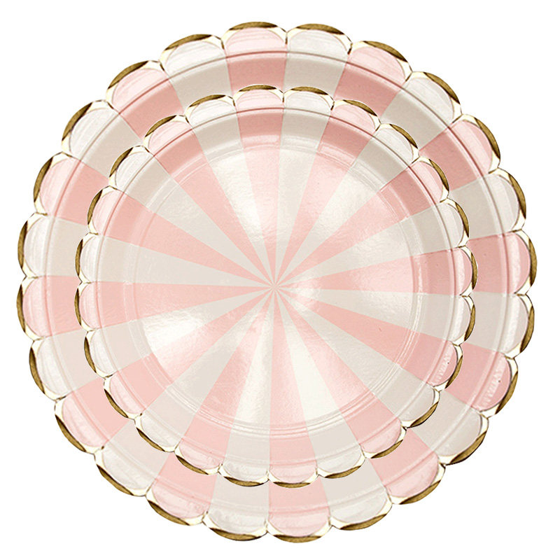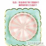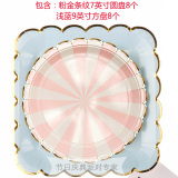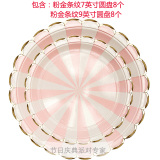 Одноразовая золотая печать бумажная тарелка обеденная тарелка детская вечеринка по случаю дня рождения навыка для вечеринки розовый макарон с твердой цветной бумагой