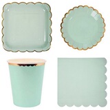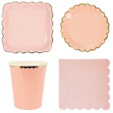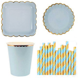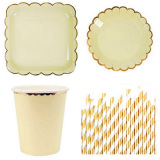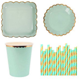 Набор бумажных полотенец включает в себя: 8 7-дюймовые диски, 8 9-дюймовые диски, 8 бумажных стаканчиков, 25 соломинок