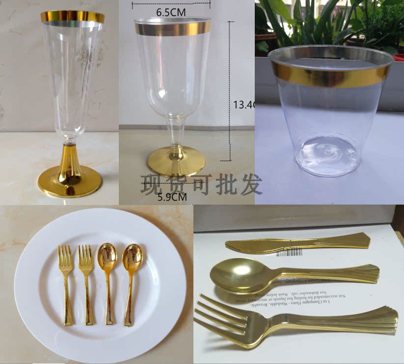 Одноразовая золотая посуда для вечеринки, золотой пластиковый бокал для шампанского, чайная чашка, обеденная тарелка