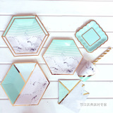 Связанная посуда поставляет одноразовую бронзовую шестиугольную тарелку, монетный зеленый мраморный рисунок бумажная бумага чашка Tiffany Blue Владелец