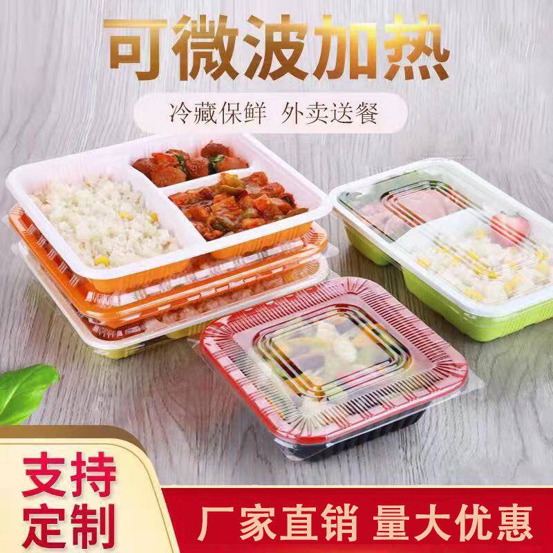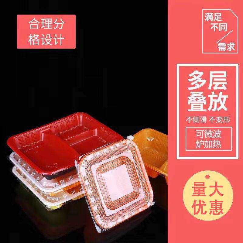 Одноразовая коробка для ланча, две, три сетки, четыре сетки, прямоугольная пластиковая ланч -коробка, бенто, фаст -фуд, упаковка на вынос с крышкой