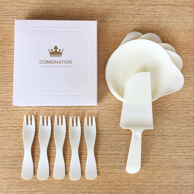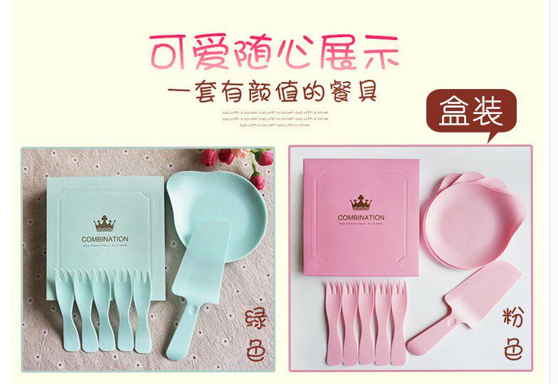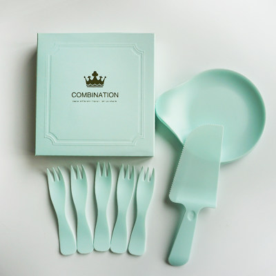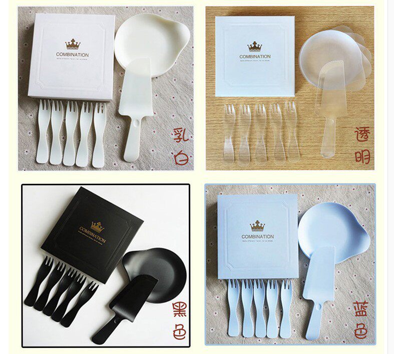 Торт на день рождения одноразовый лезвие и вилка высокая -громкость воды -в форме торта, тарелка, нож, вилка, тарелка, 19,9 упаковочная коробка