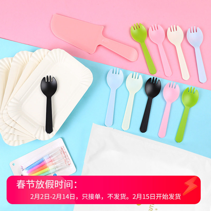 Запеченная посуда для торта, нож и вил -диск, одноразовый торт ко дню рождения, лезвие вилочный диск, торт торт
