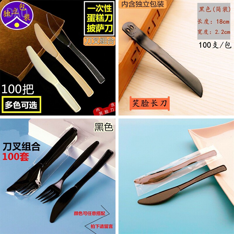 Независимая упаковка 100, один -время для торта, западный обеденный меч, пластиковый фруктовый нож и вилка, нарезанный лунный пицца, нож пицца
