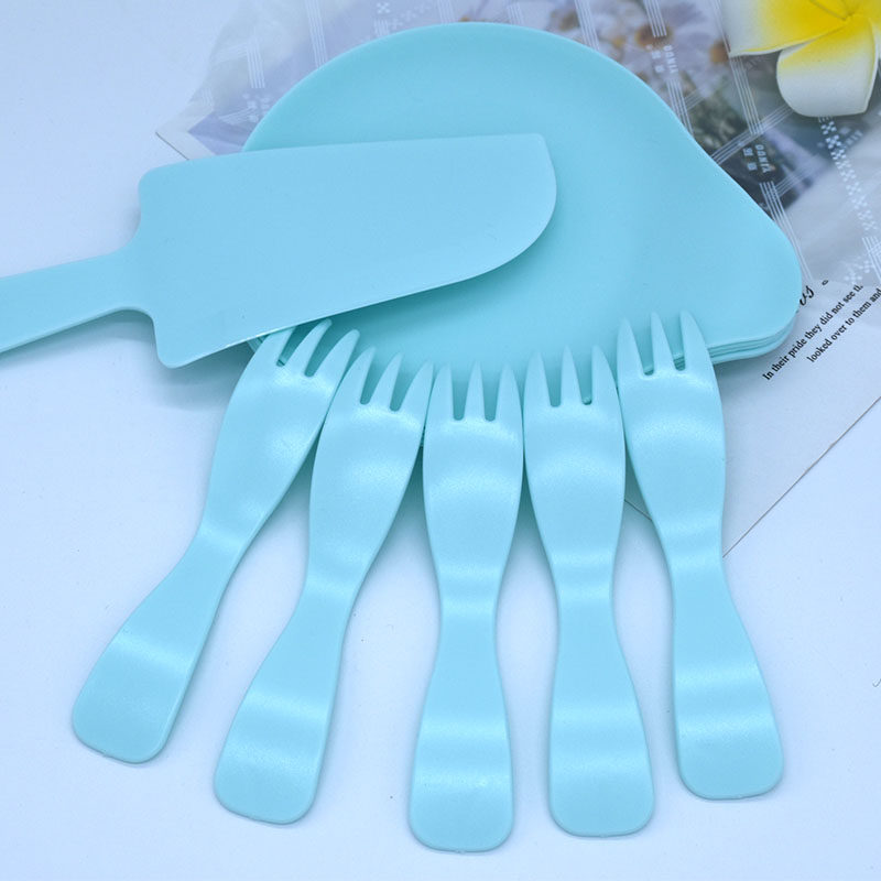 - Зеленые 5 тарелок + 5 вилок + 1 нож (в коробке)