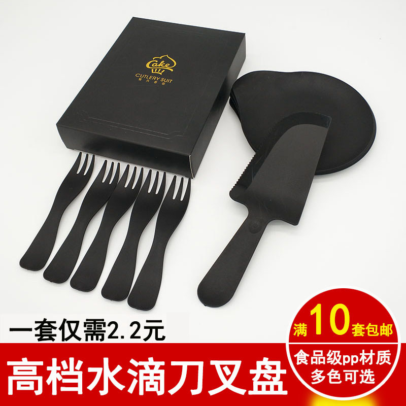 Одноразовая обеденная тарелка в форме капли, пластиковый черный высококлассный комплект