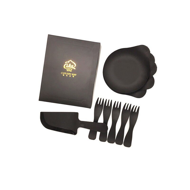 - Черные 5 тарелок + 5 вилок + 1 нож (в коробке)
