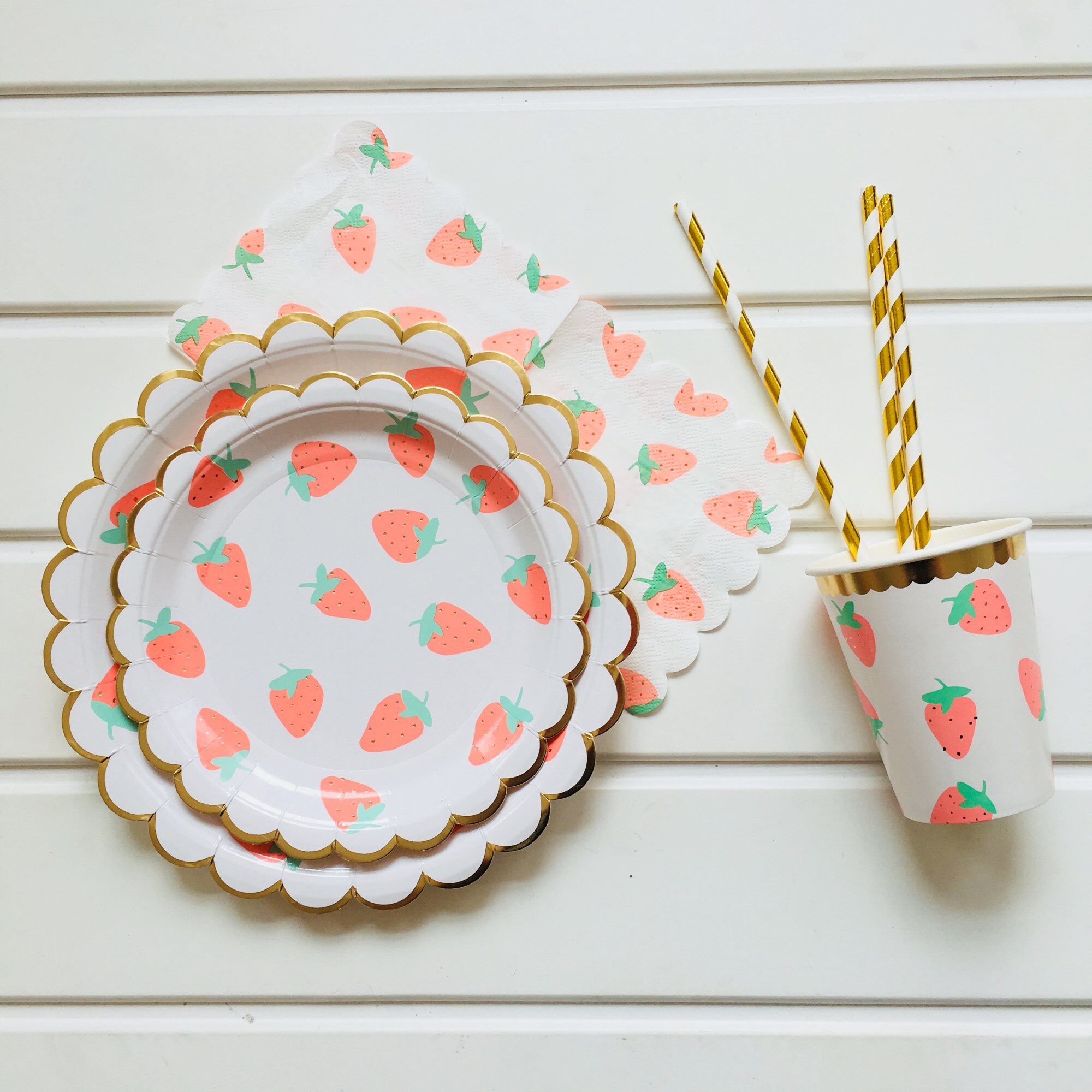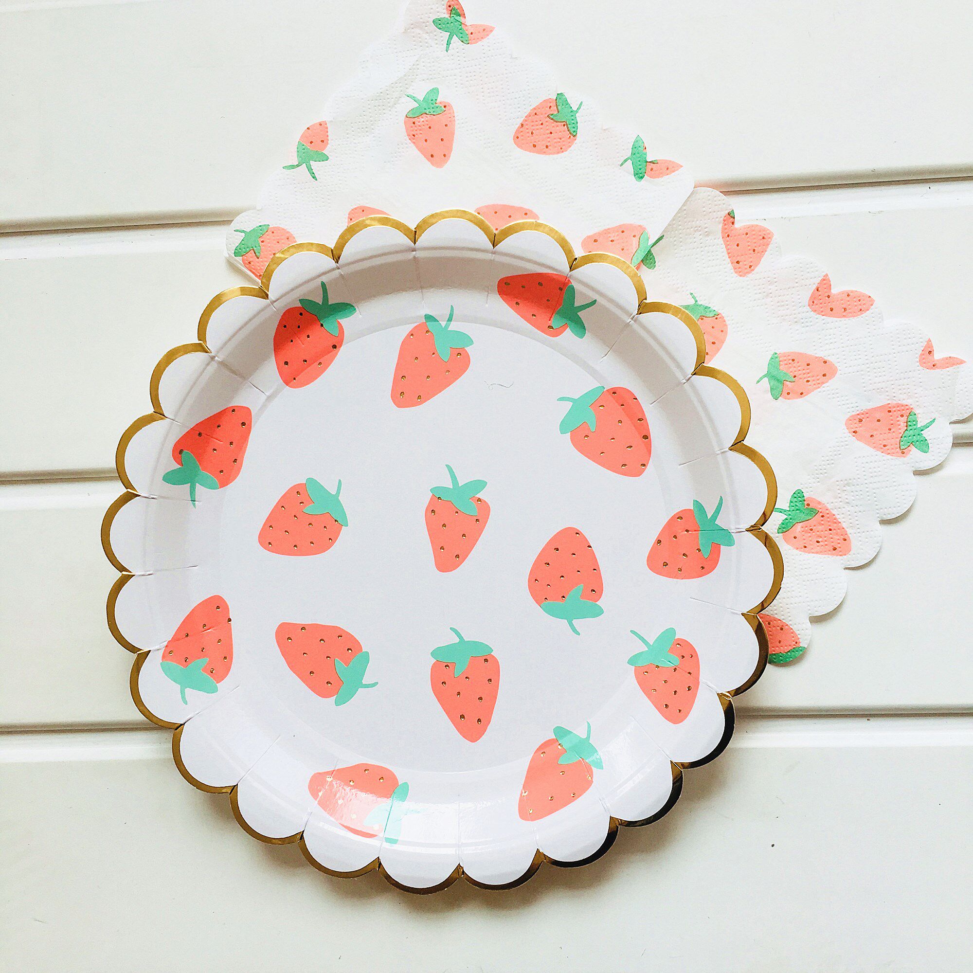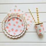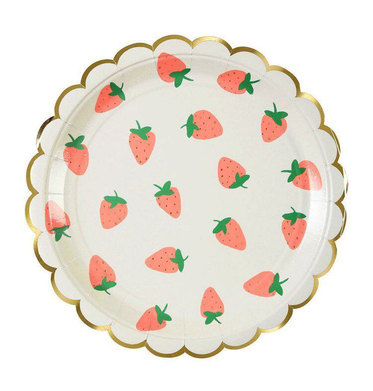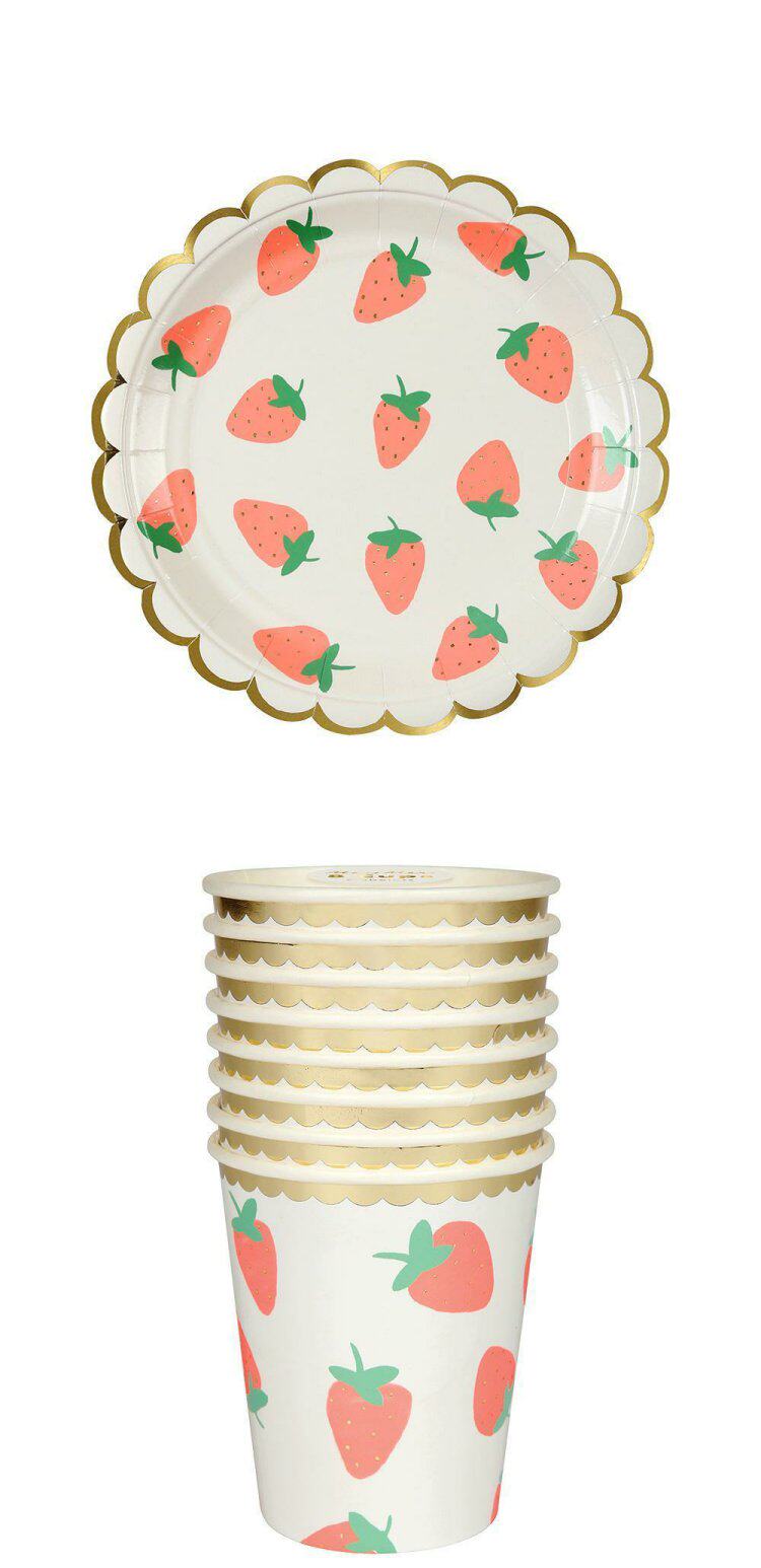 Клубника, вечернее платье, десертная посуда, брендовая бумажная тарелка