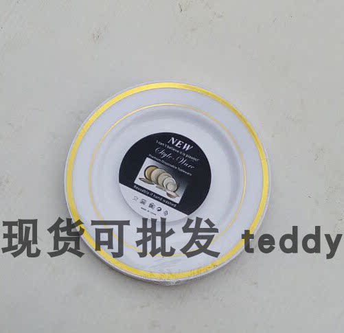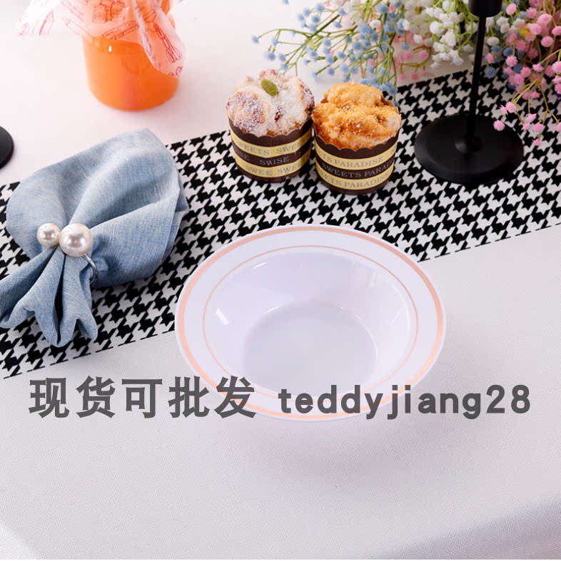 Одноразовая салатная миска с золотистыми границами сала с глубоким диском суп -диск твердый пластиковый десертный диск имитация фарфоровая миска белые фрукты миска