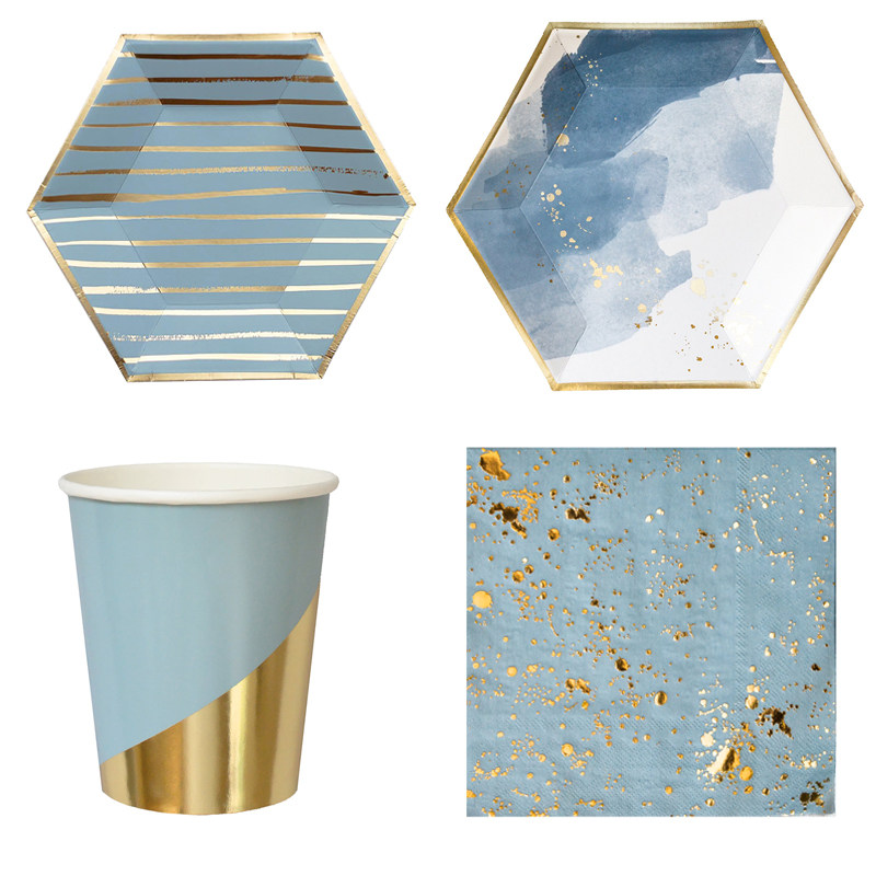Весь набор включает в себя:8 8 -INCH PLATES, 8 10 -INCH ПЛАТЫ, 8 бумажных стаканчиков и 16 штатных бумажных полотенец (слои 25x25CMX3).