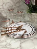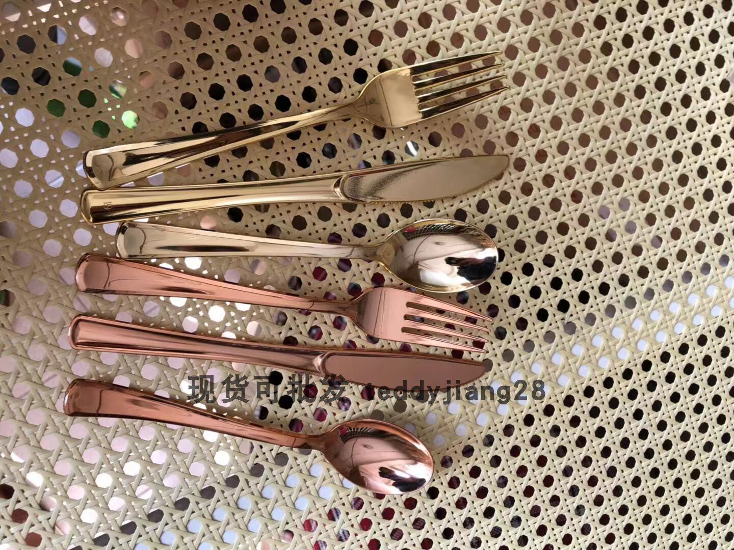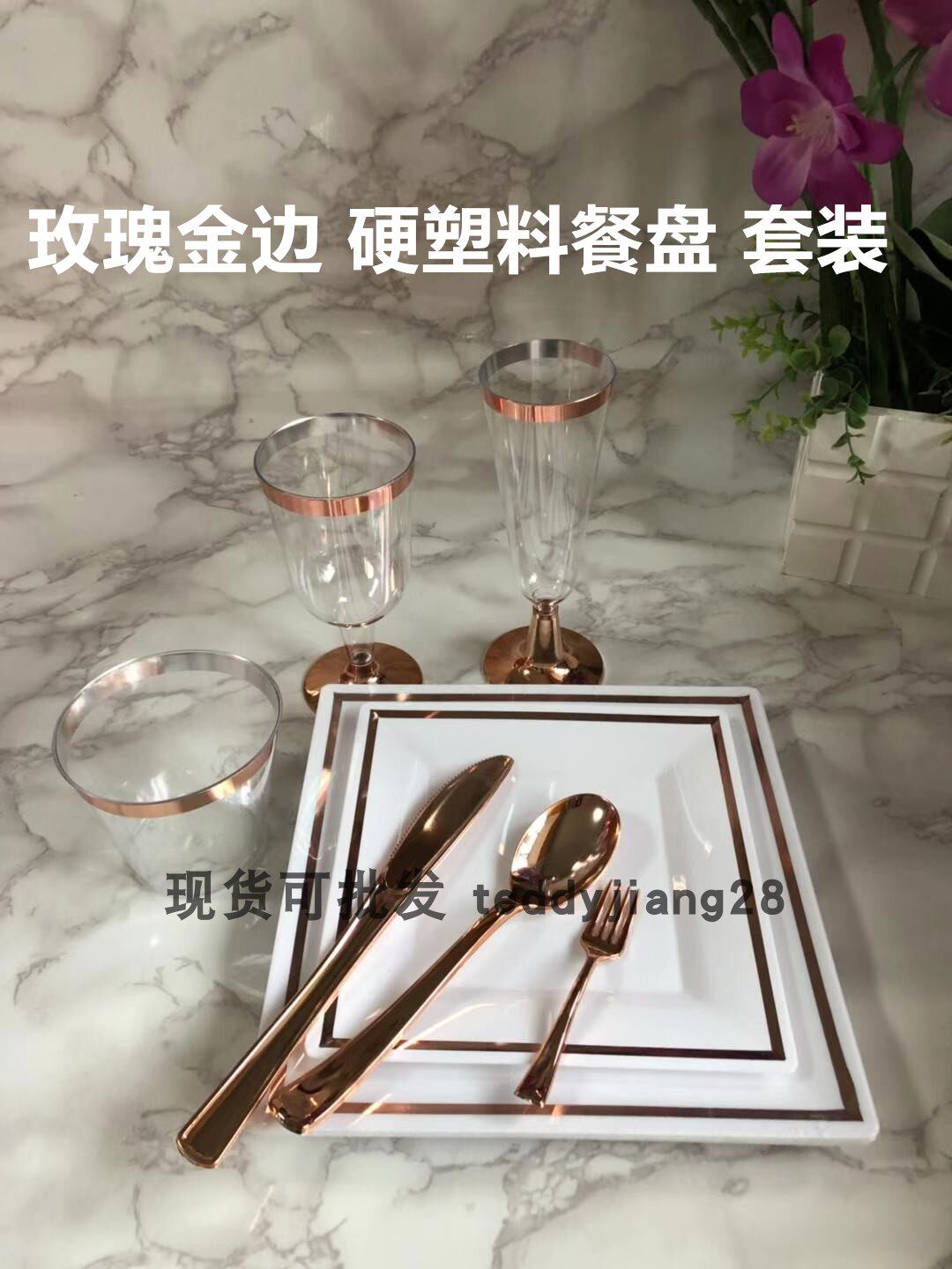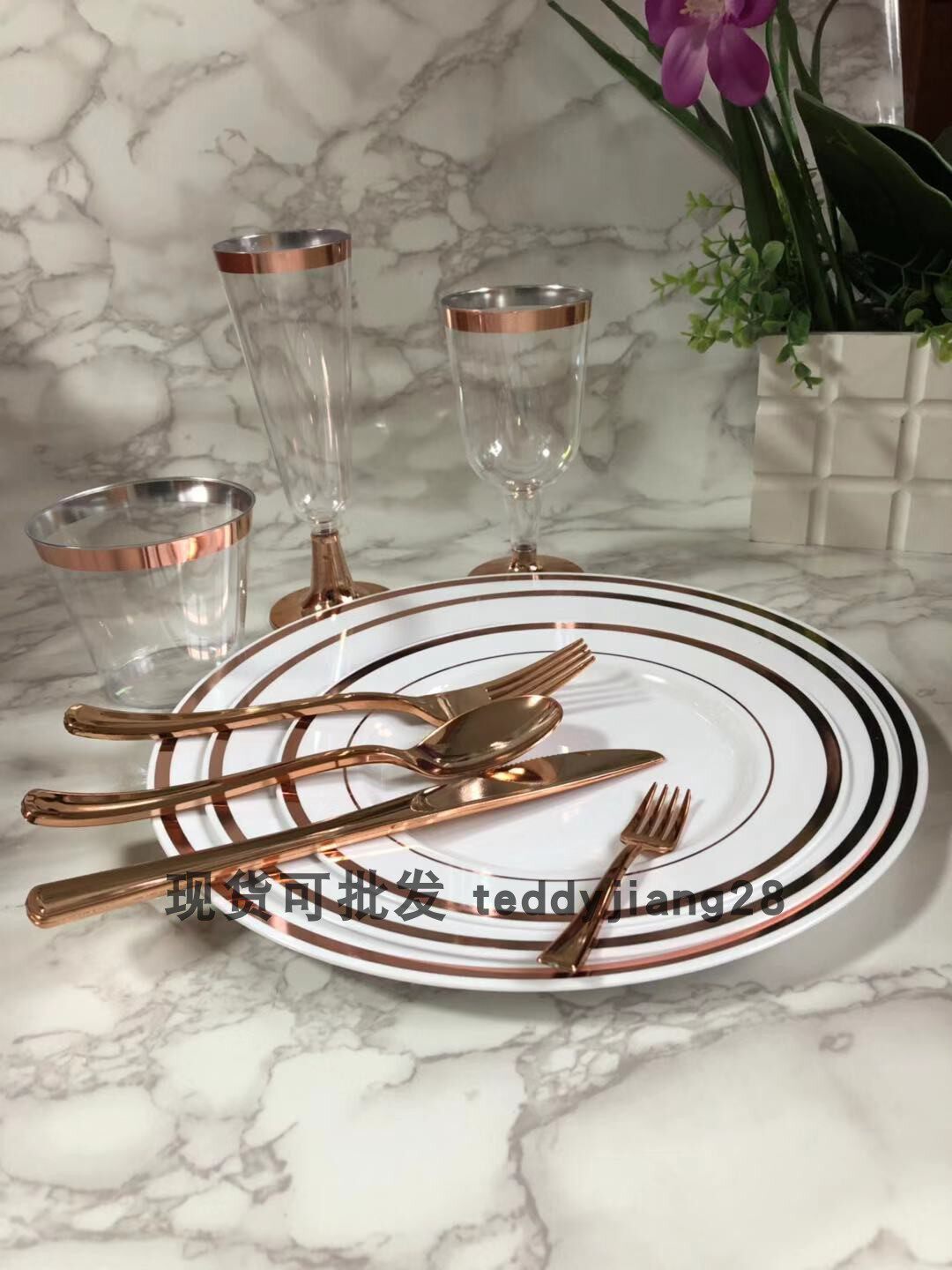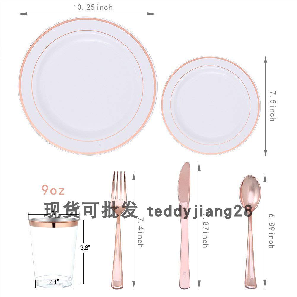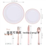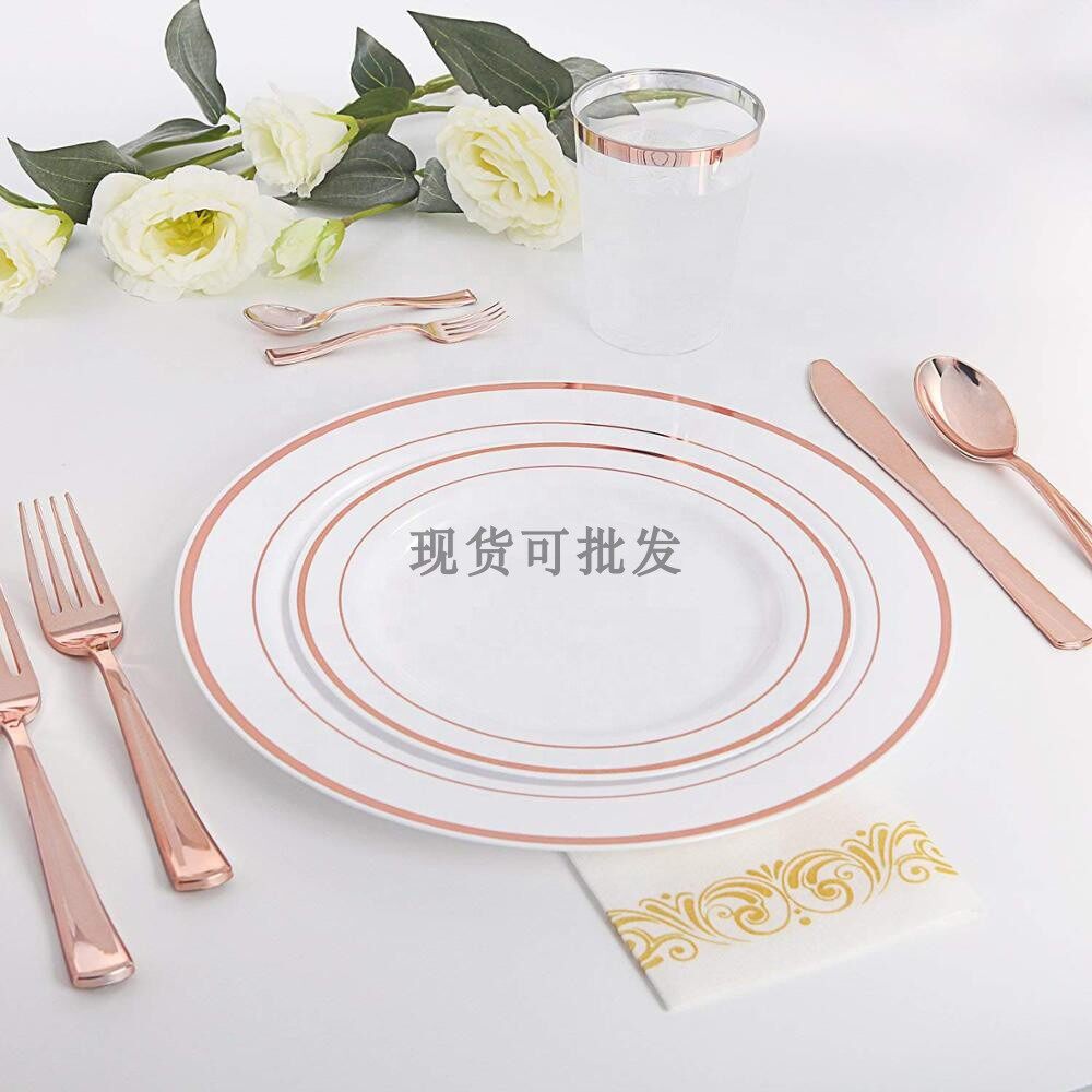 Одноразовая золотая посуда, пластиковая обеденная тарелка для вечеринки, бокал, розовое золото