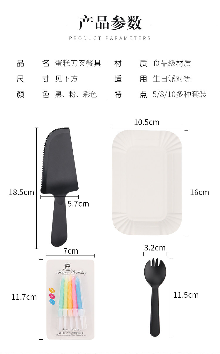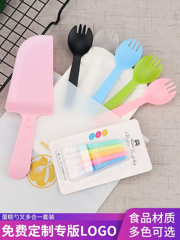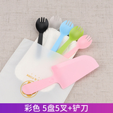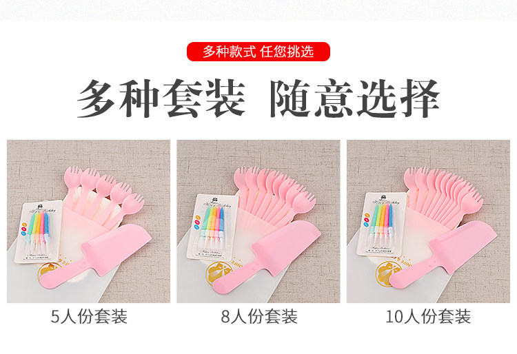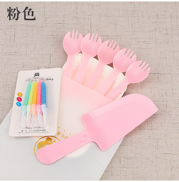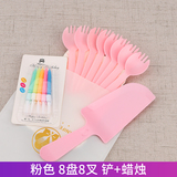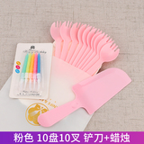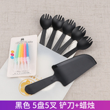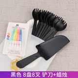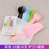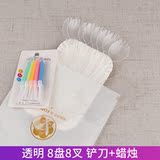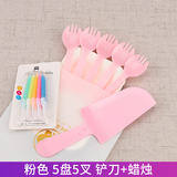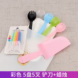 День рождения торт, ножа и вилка, установленные толстые блюдо для торта одноразовая бумажная лотка для формовки комбинация таблеток настройка