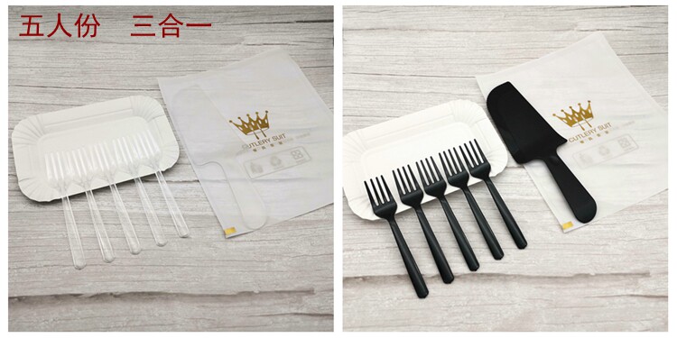 Одноразовый комплект, пластиковая прямоугольная посуда, «три в одном»