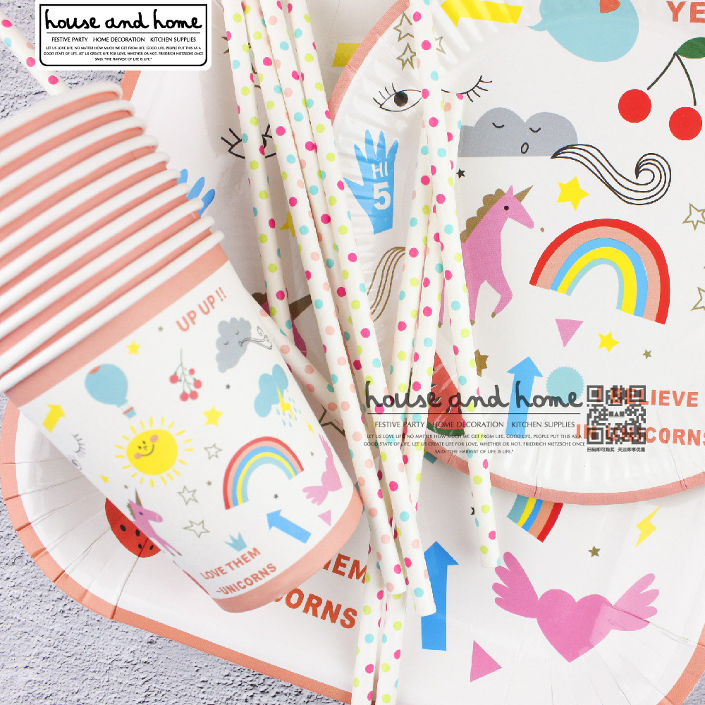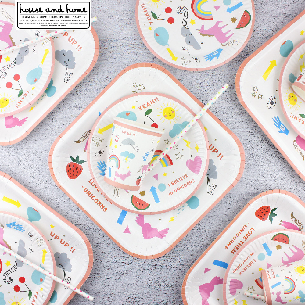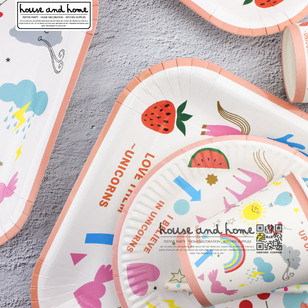 Одноразовое вечернее платье, обеденная тарелка, цветная бумага, бумажная тарелка, посуда, комплект, единорог