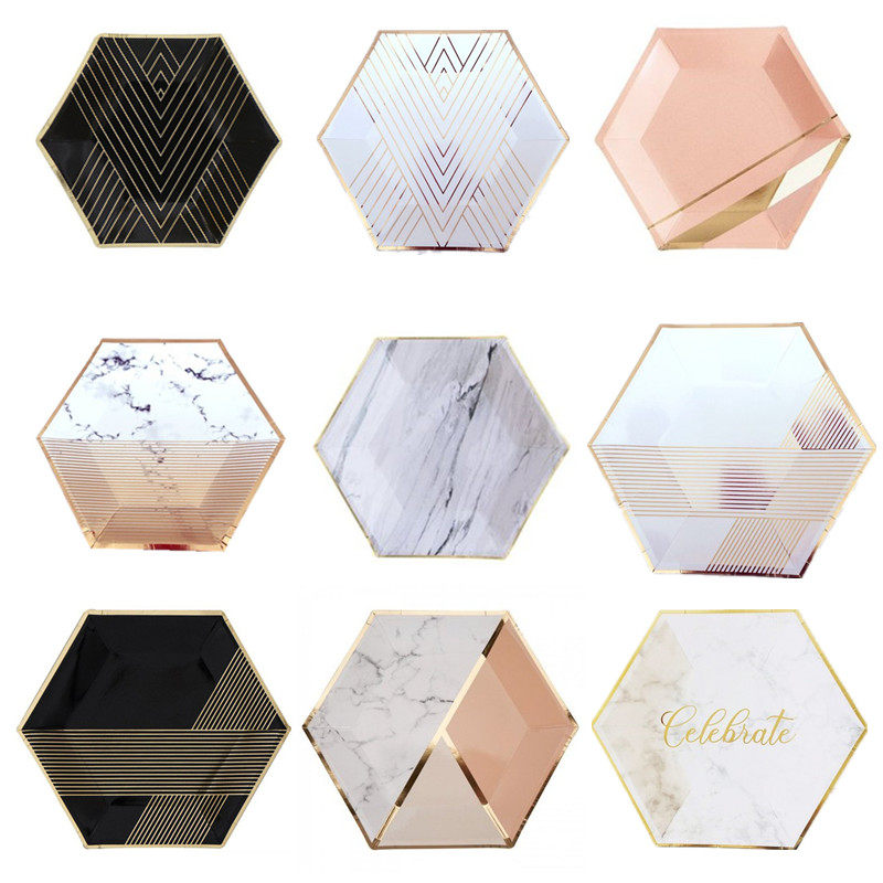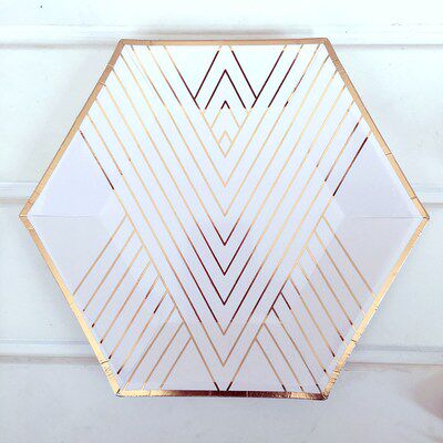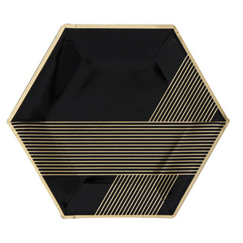 Новая вечеринка по случаю дня рождения одноразовый шестиугольный поднос для бумажных лоток декорирование дикой природы Piccin Tailware High -Fend Hot Gold