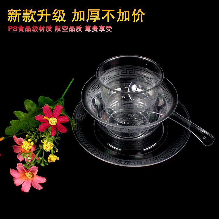 Одноразовая посуда, прозрачный комплект, упаковка, 4 предмета, увеличенная толщина