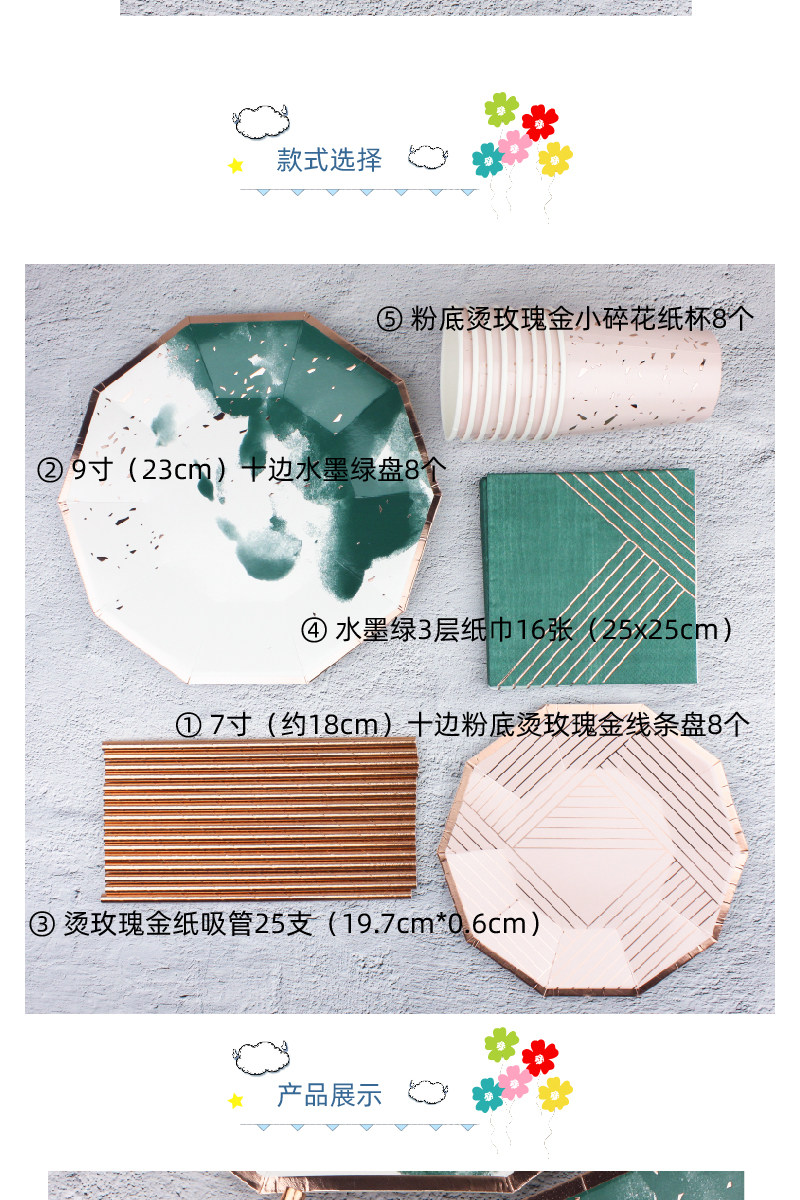 Феличе Фази одноразовая бумажная посуда в стиле чернил китайская бумажная посуда вечеринка золотая маркировка десертов.