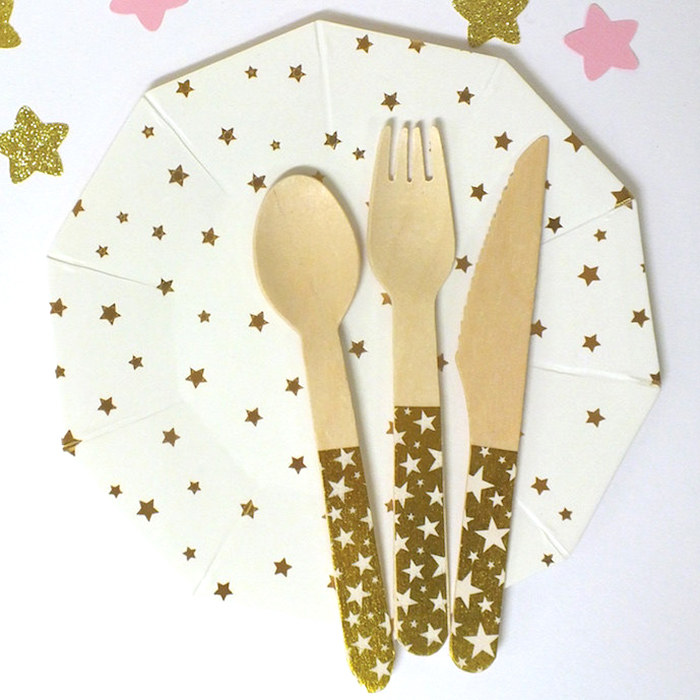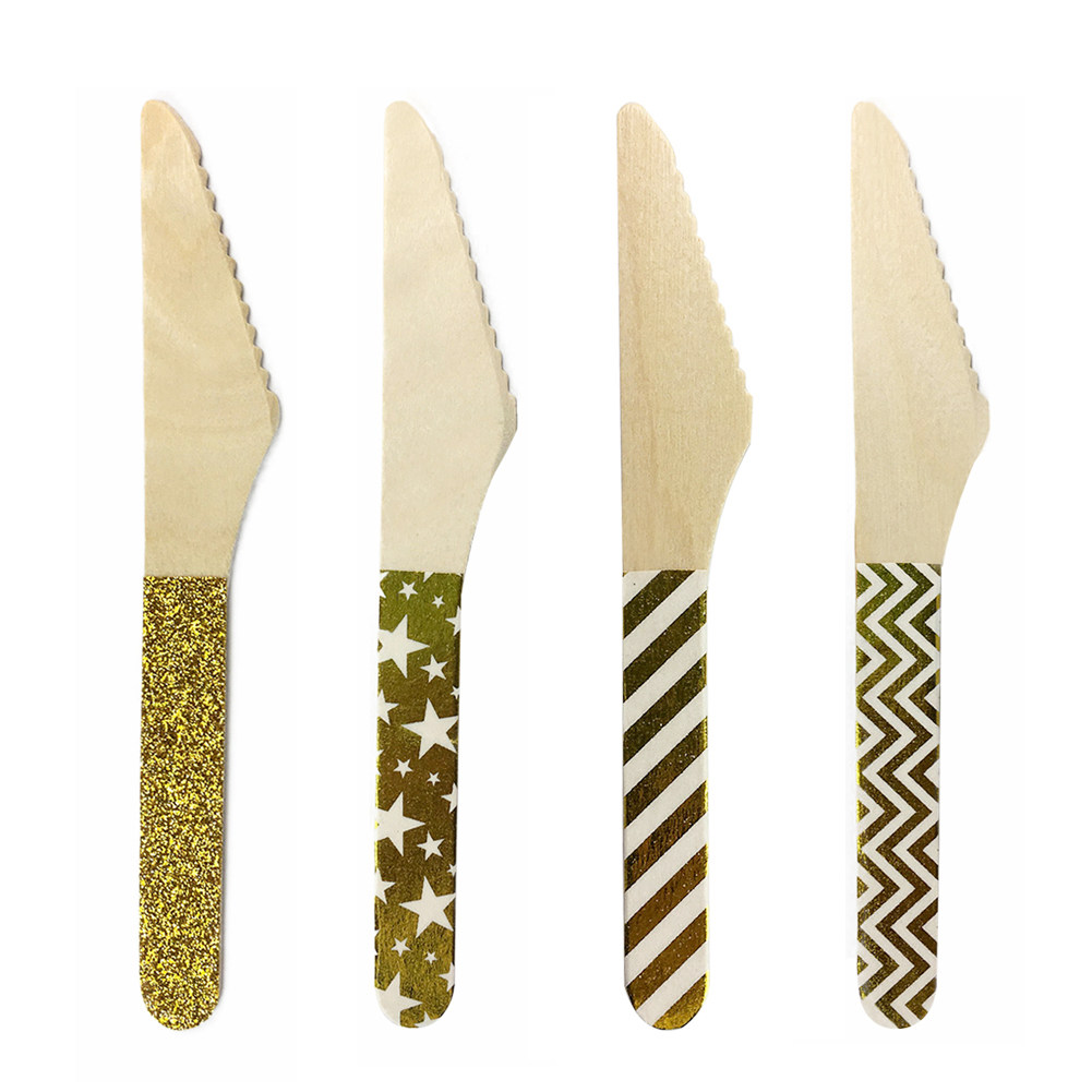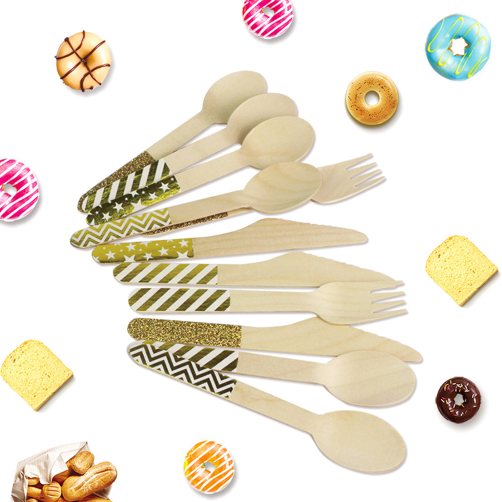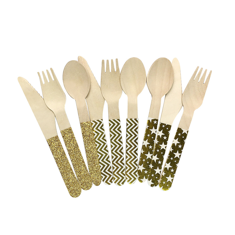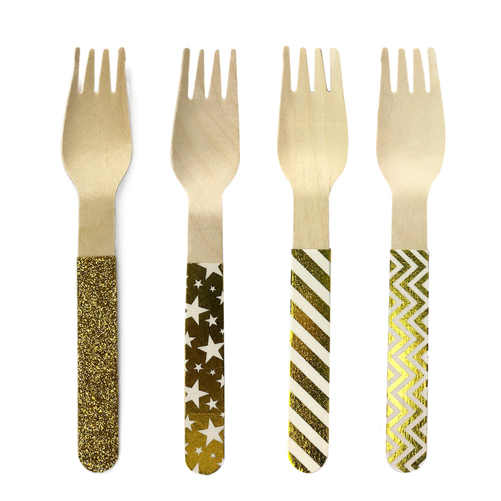 Один -время деревянный золотистый кровоточащий сценарий сценарий полосатой звезда Деревянный вилка фруктовый торт торт торт для пикника