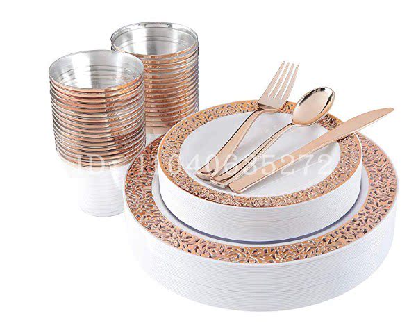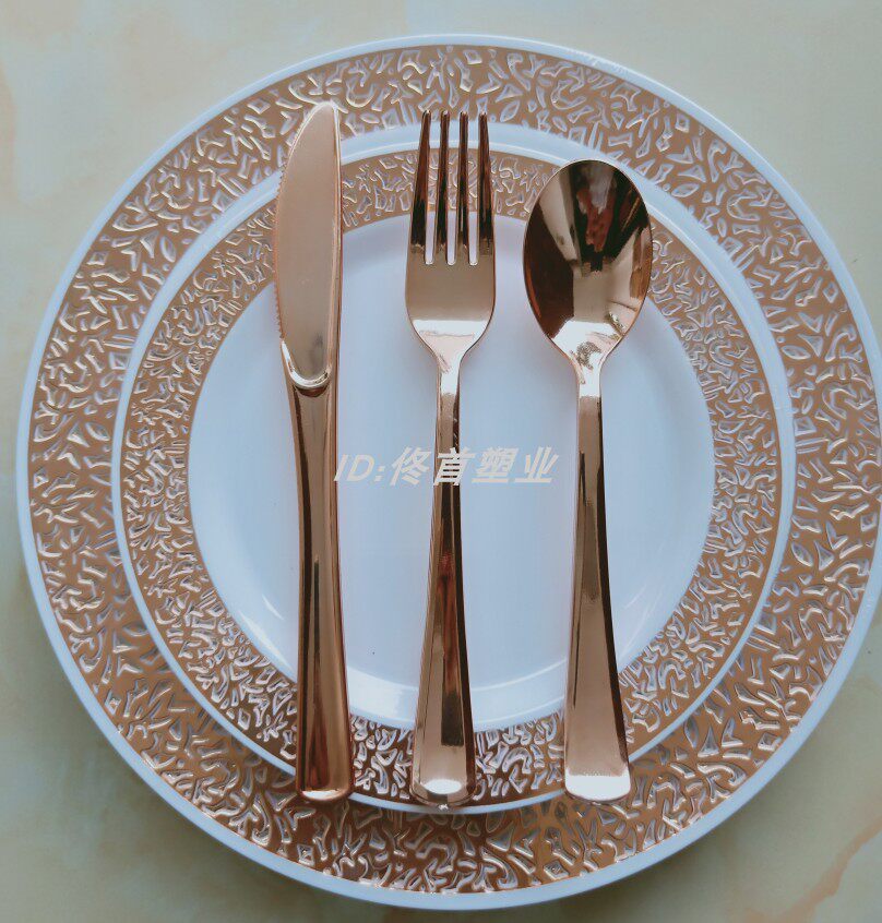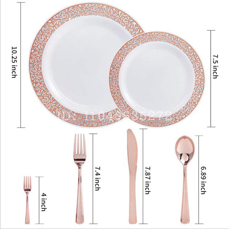 - 10,25-дюймовая квадратная тарелка с 2 кольцами розового золота 30 пакетов