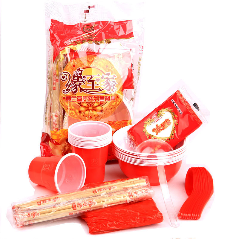Одноразовый экологичный праздничнный комплект для домашнего использования, красная посуда