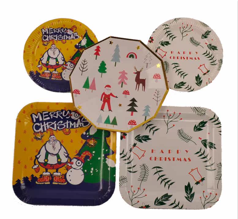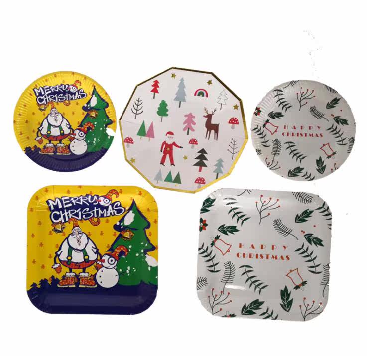 Одноразовая рождественская экологичная посуда, комплект