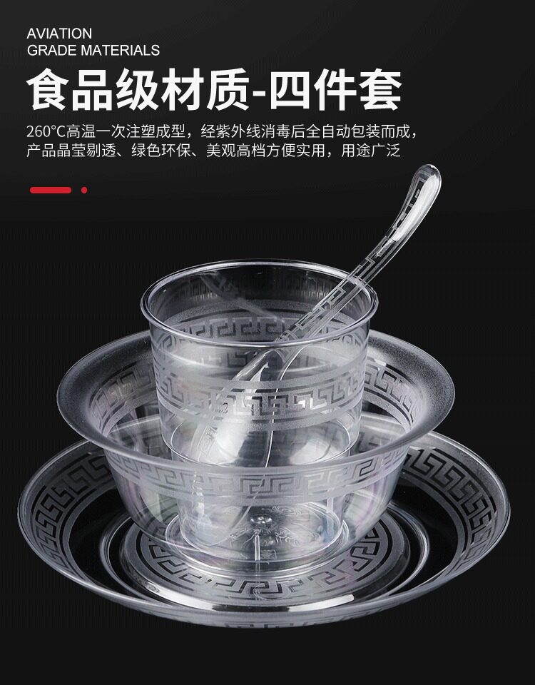Одноразовая посуда, пластиковый комплект, 4 предмета