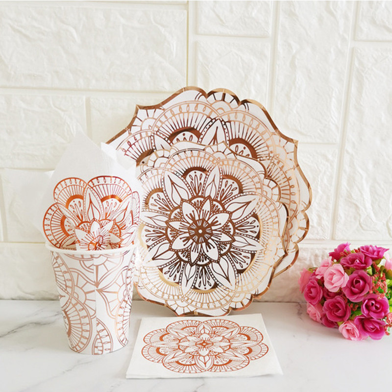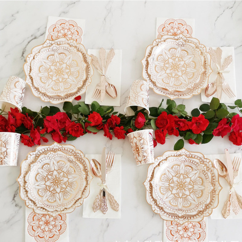Одноразовая обеденная тарелка с розой в составе, послеобеденный чай, посуда, комплект