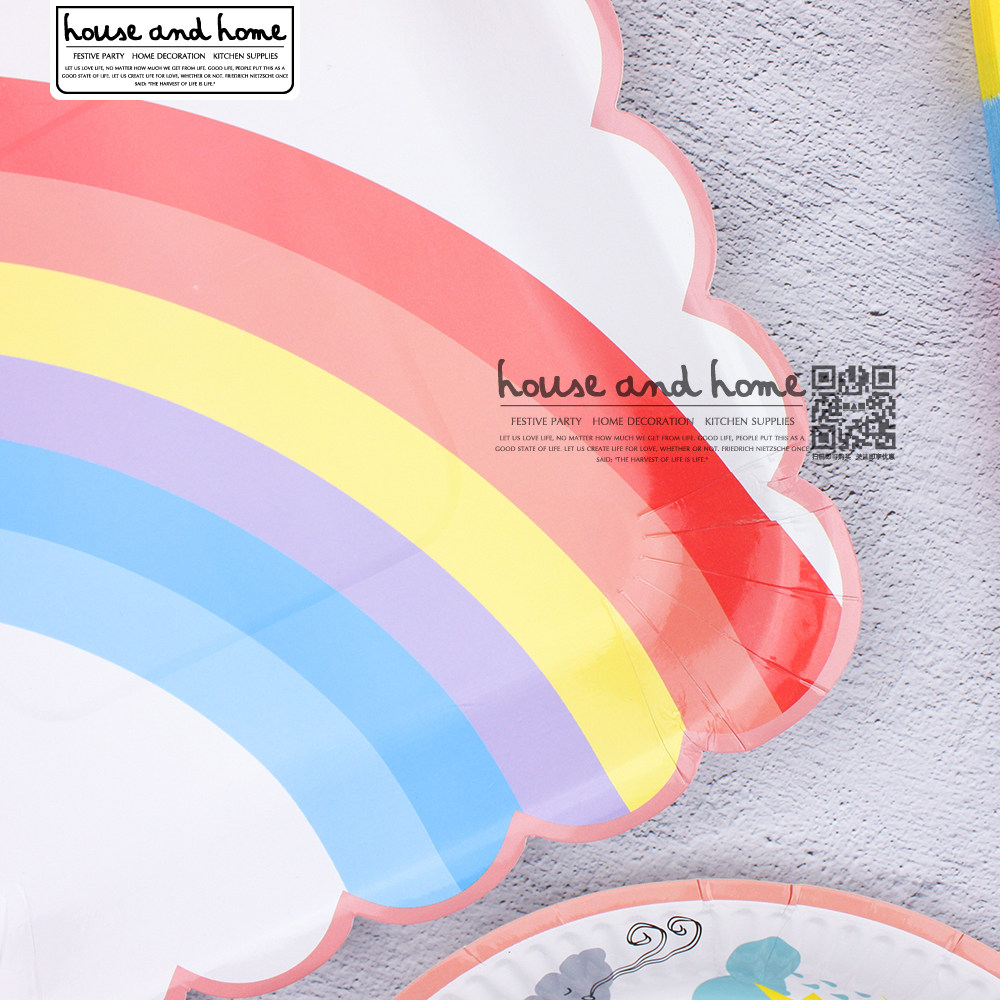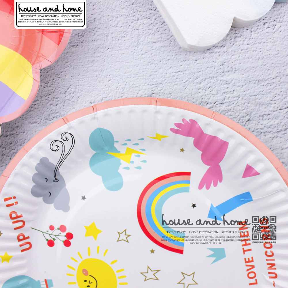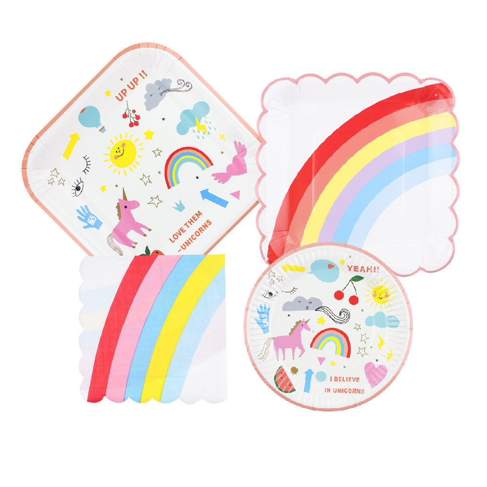 Радужная одноразовая бумажная тарелка, вечернее платье, обеденная тарелка, посуда, комплект, единорог
