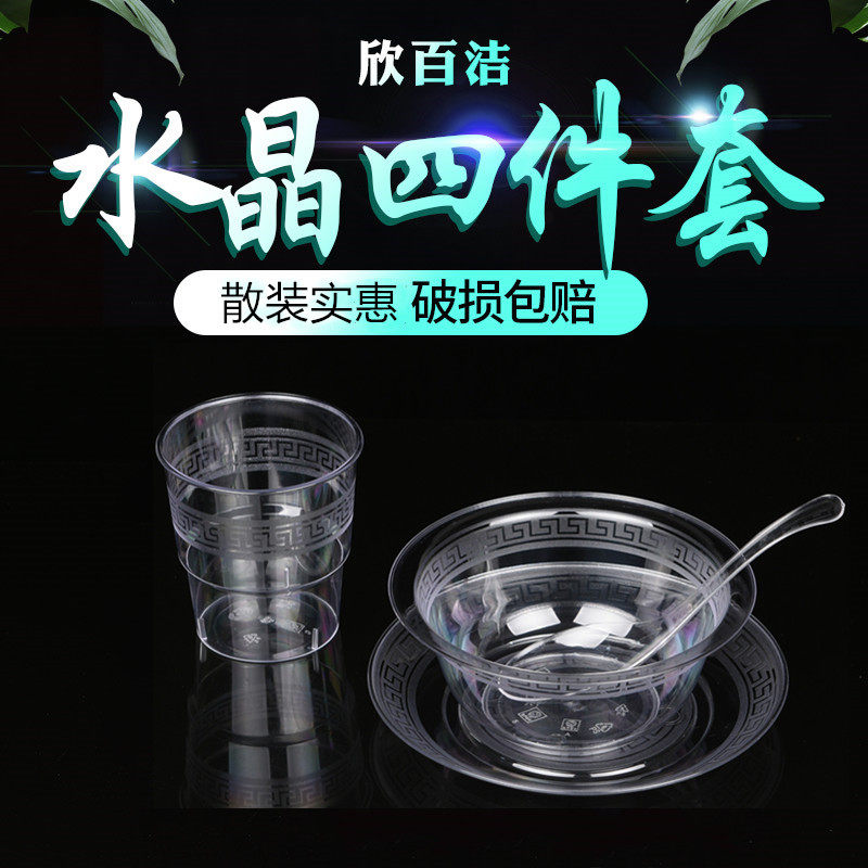 Одноразовая посуда, комплект, стакан для домашнего использования, 4 предмета