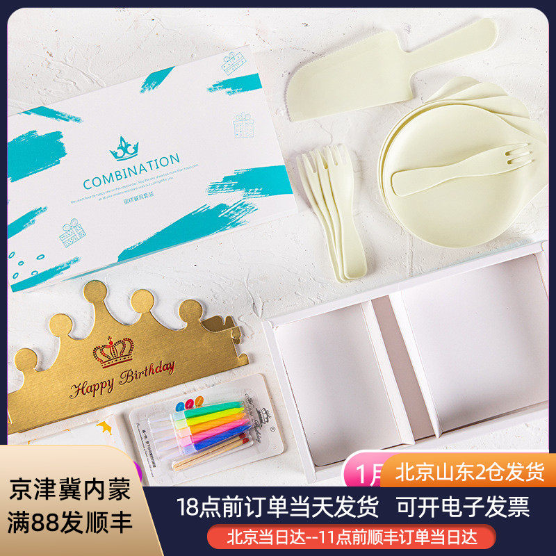 Посуда, одноразовый комплект, пластиковая высококлассная обеденная тарелка, свеча, шапка, вилка