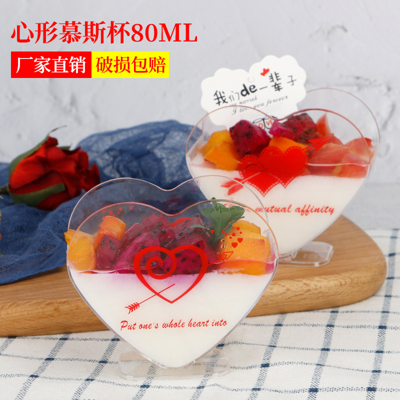 Любовь -в форме мусса чашка пудинга чашка чашки сердца -в форме желе -чашка тирамису чашка десерт для десерта десерт пластик одноразовый