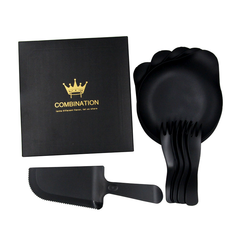 - Черный 5 вилки 5 диск 1 Нож + подарочная коробка (50 комплектов)