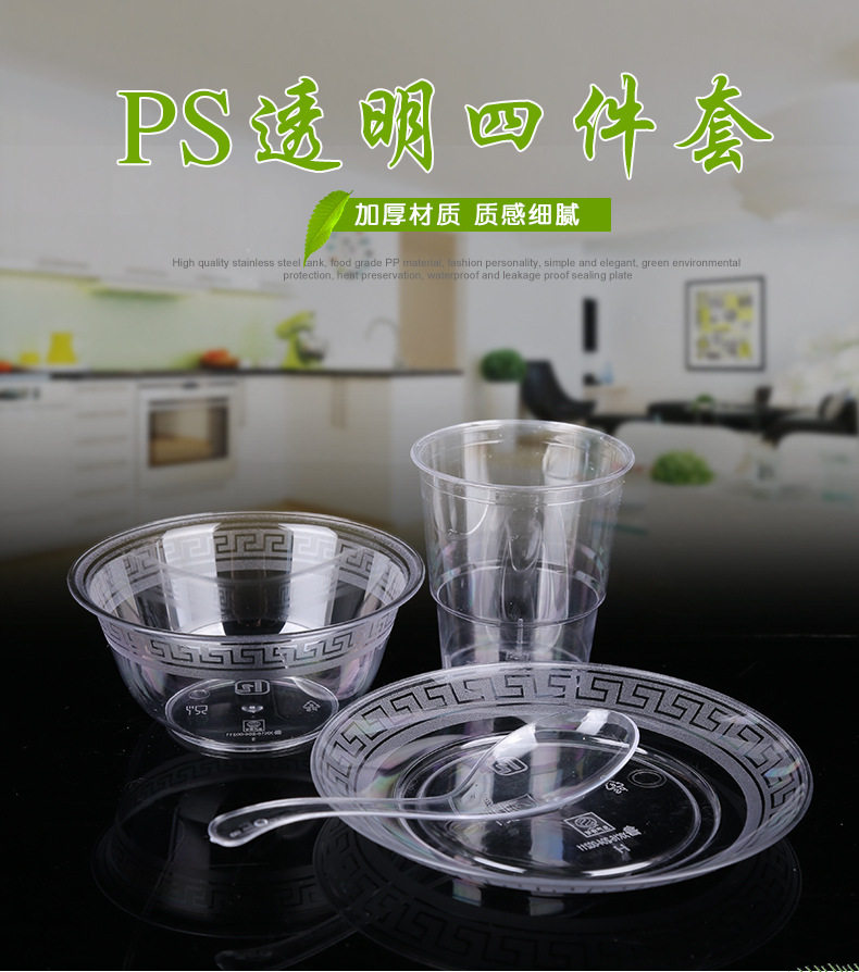 Одноразовая посуда, экологичный высококлассный пластиковый комплект для домашнего использования, 4 предмета