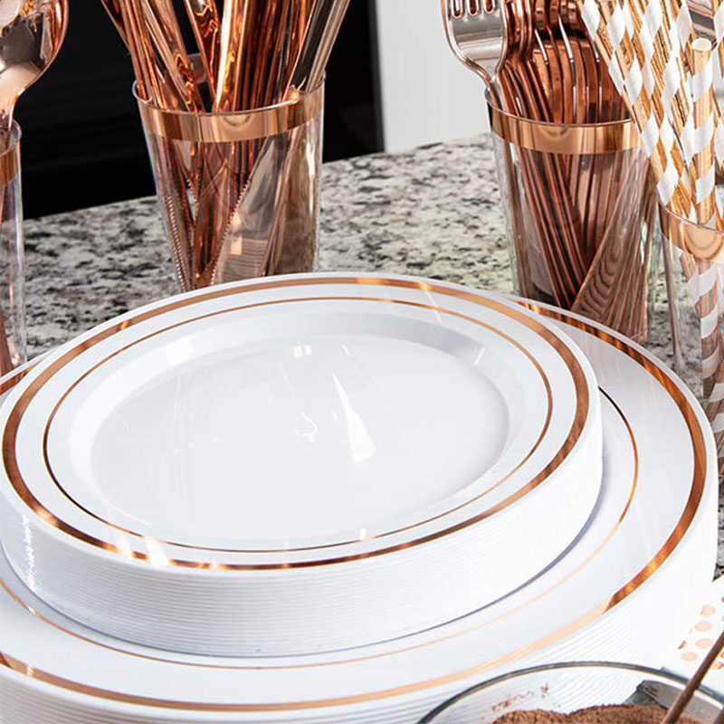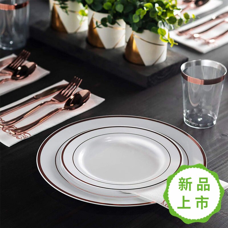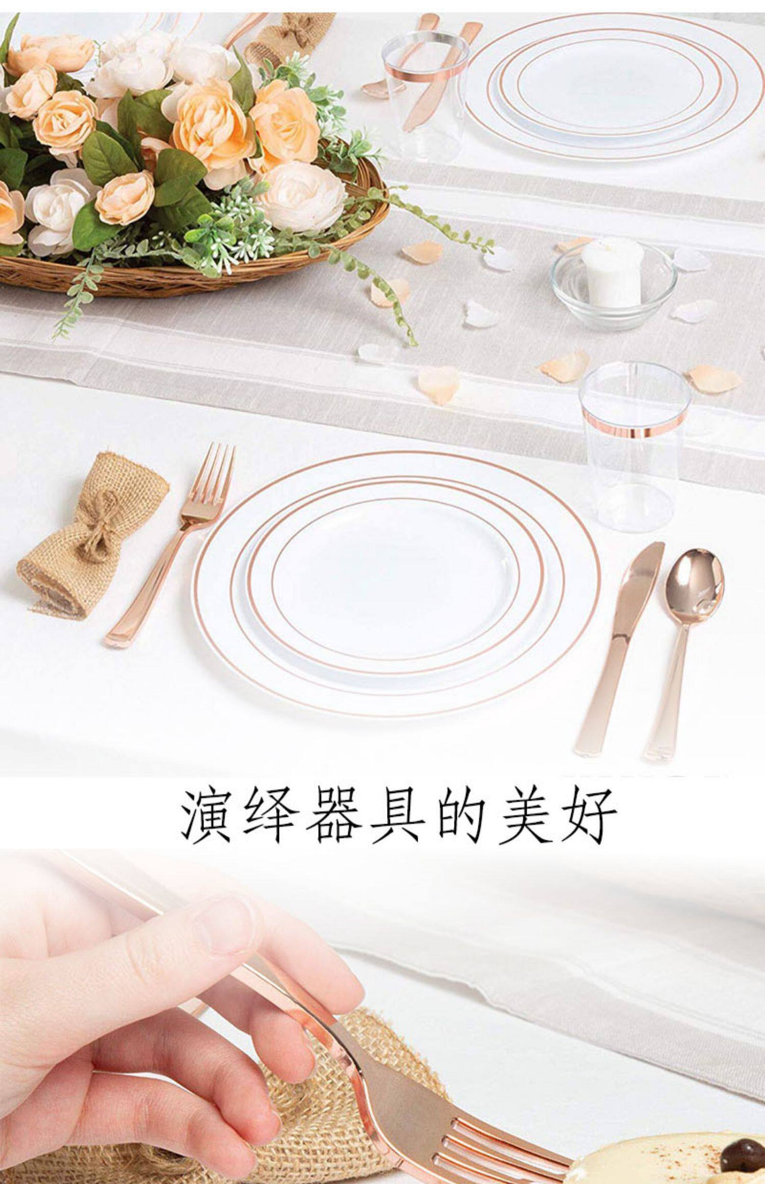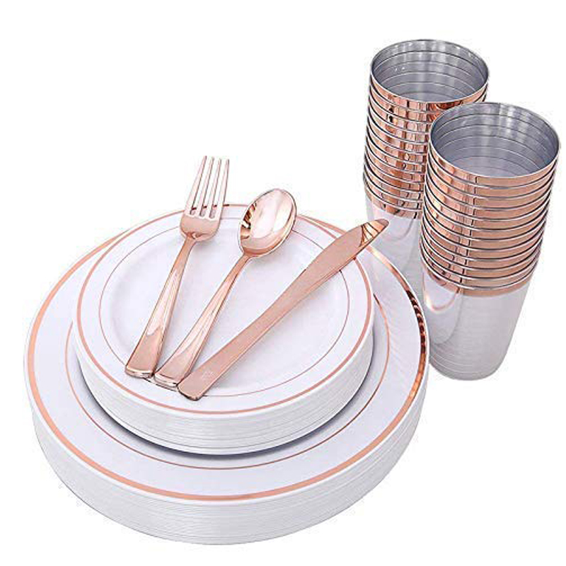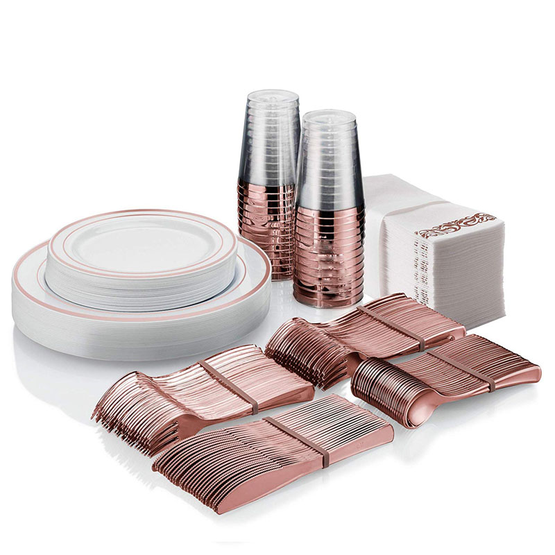 Пластиковая одноразовая золотая посуда для вечеринки, бокал для шампанского, розовое золото