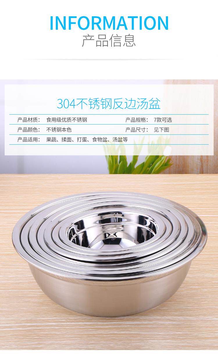 304 бассейн из нержавеющей стали круглый суп Толстый фруктовый бассейн бассейн для выпечки пекарня маленькая рисовая чаша столовая домашняя доставка бесплатная доставка