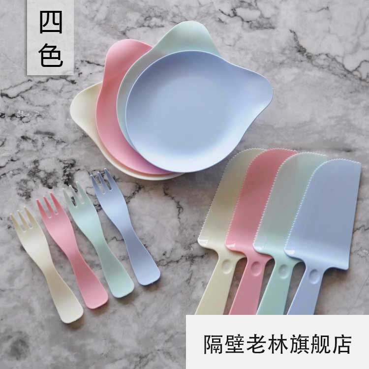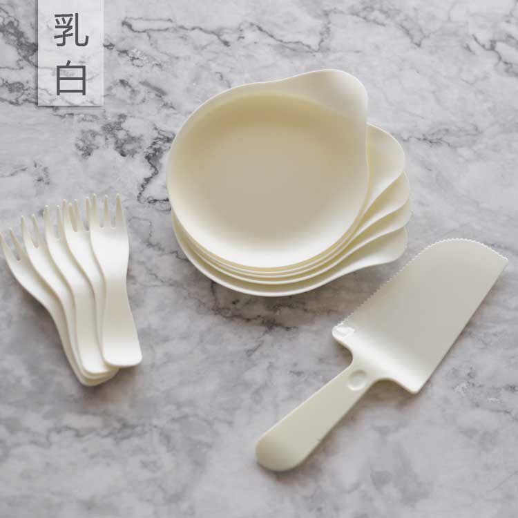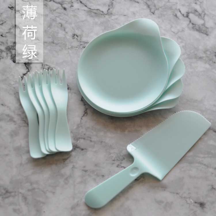 Маленькая тема свежего стиля пластиковое одноразовое блюдо, нож вилка ложка десерта 5 человек