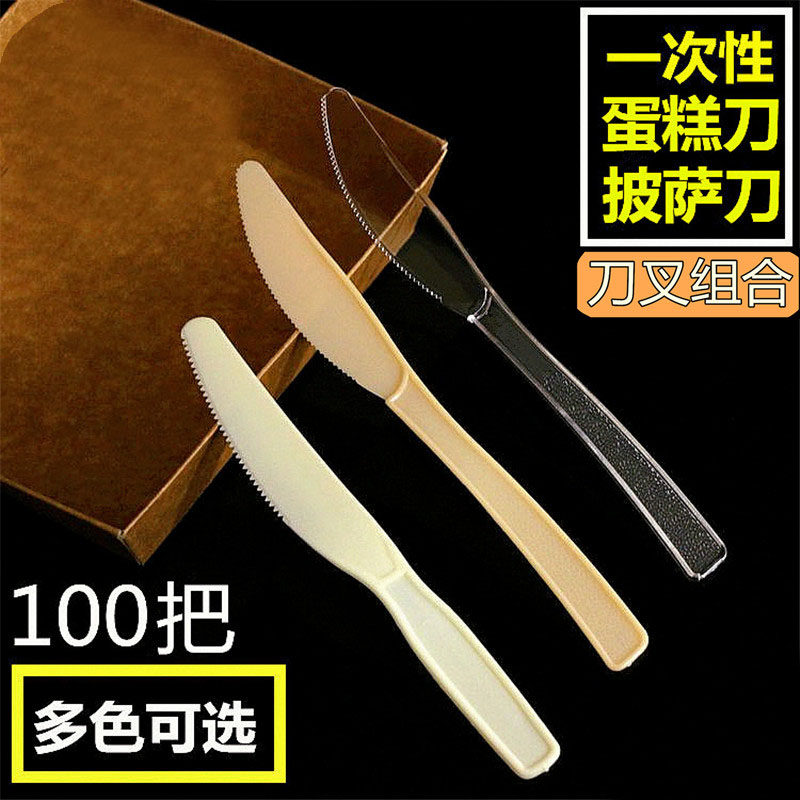 Независимая упаковка 100, один -время для торта, западный обеденный меч, пластиковый фруктовый нож и вилка, нарезанный лунный пицца, нож пицца