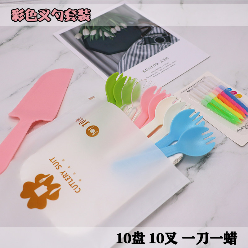 Набор посуды для торта одноразовый торт на день рождения, нож и вилка, одноразовая тарелка для пирога.