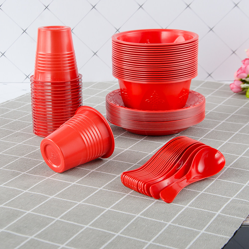 Одноразовый комплект, посуда, экологичная высококлассная красная ложка для домашнего использования, увеличенная толщина