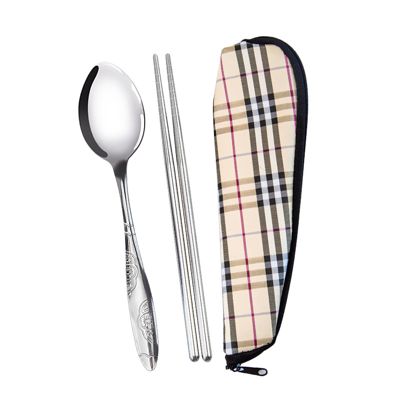 Палочки для еды, ложка, комплект из нержавеющей стали, портативная посуда для школьников, 3 предмета