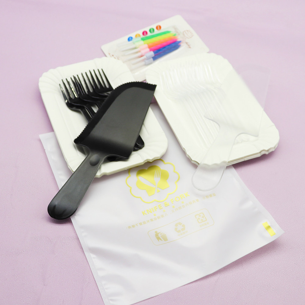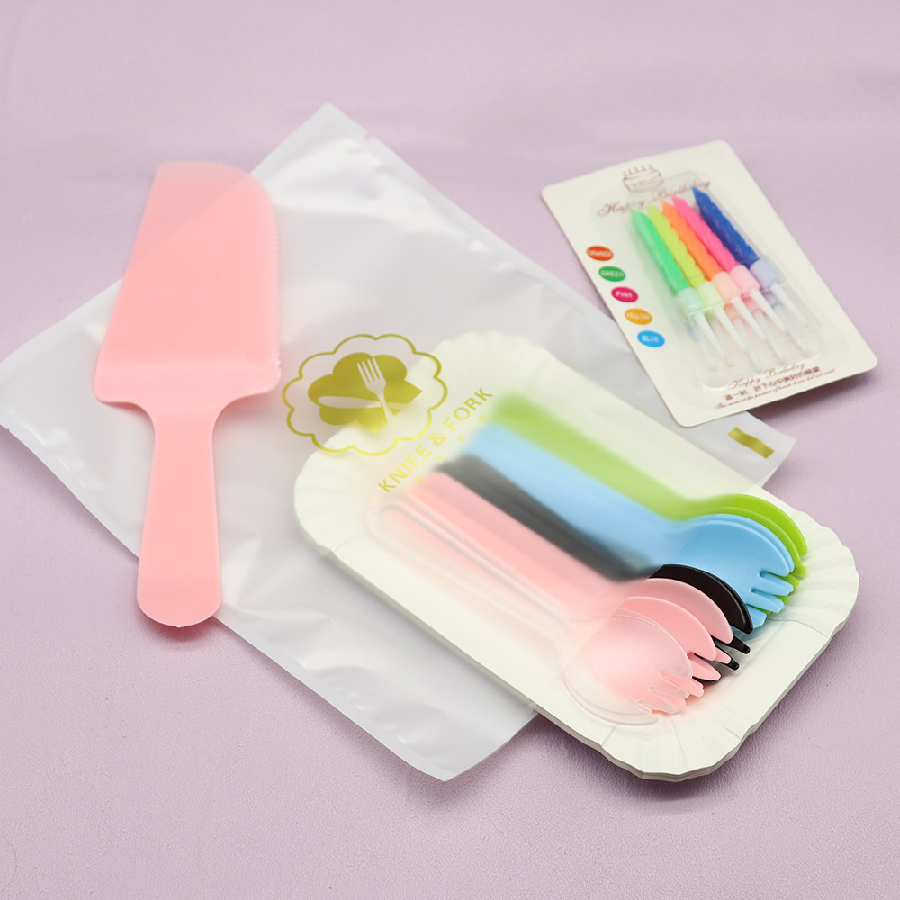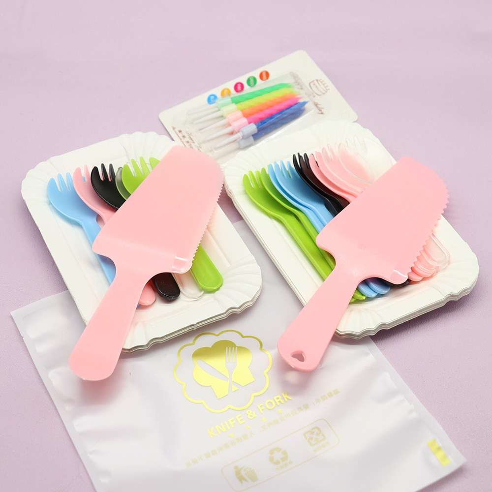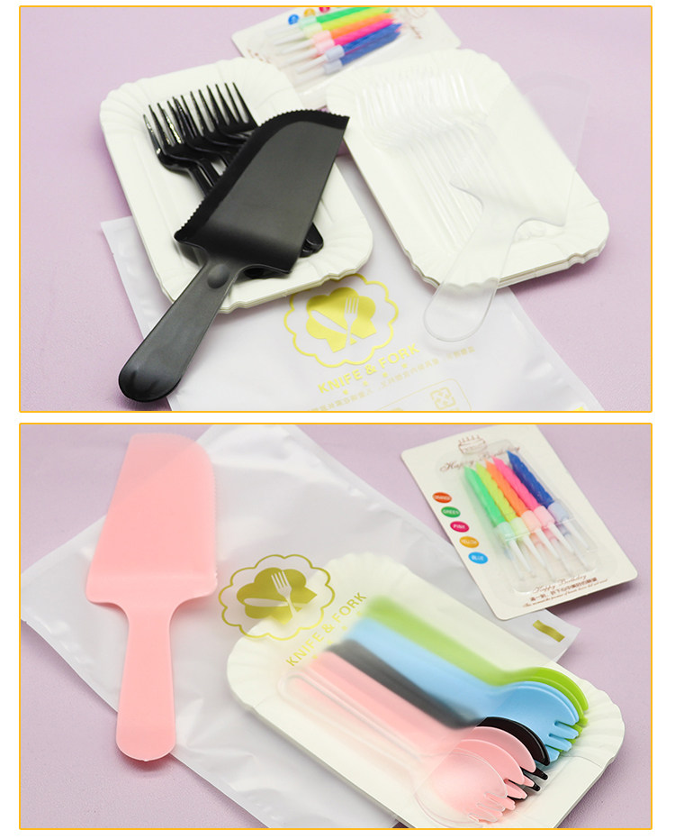 День рождения торт Сваренная бумага набор пластикового одноразового ужина Клинка и разрыхлитель