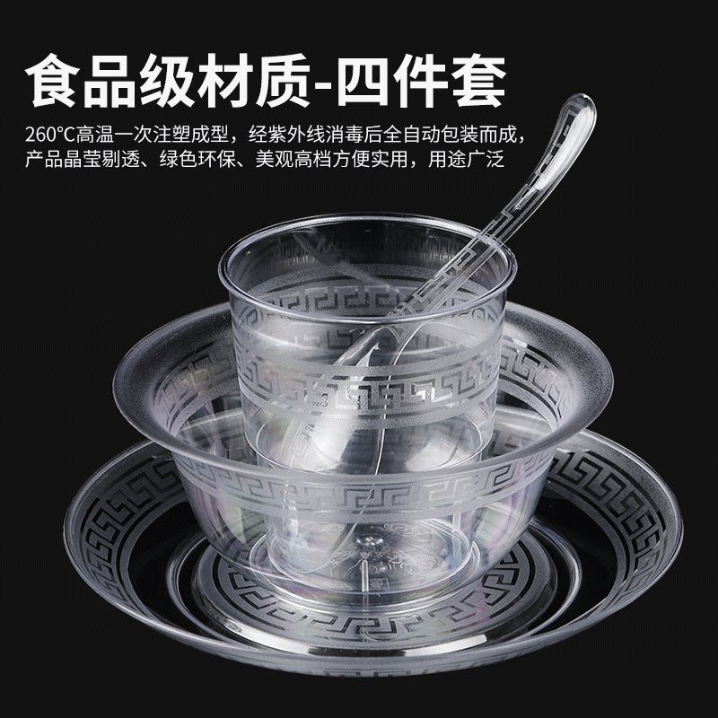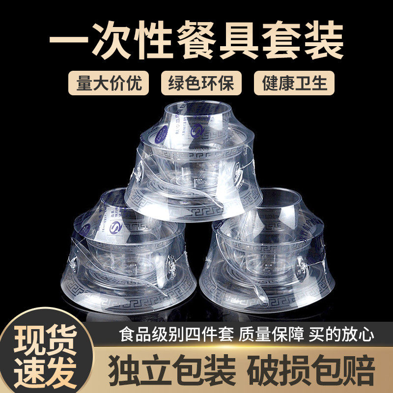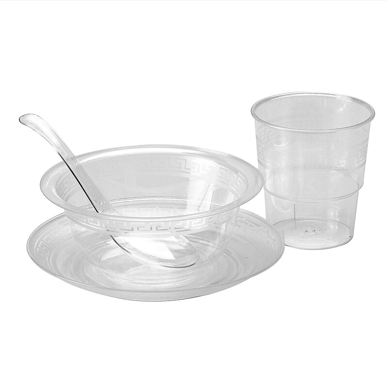 Одноразовая посуда, комплект, пластиковый стакан, 4 предмета