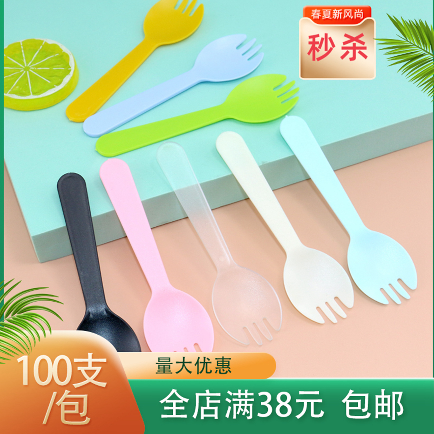 Food -Обновление одноразовая пластиковая вилка Spoon Spoon Spoon Speek Independing Egg Cake Fork Черный розовый прозрачный десертный мороженое вилка