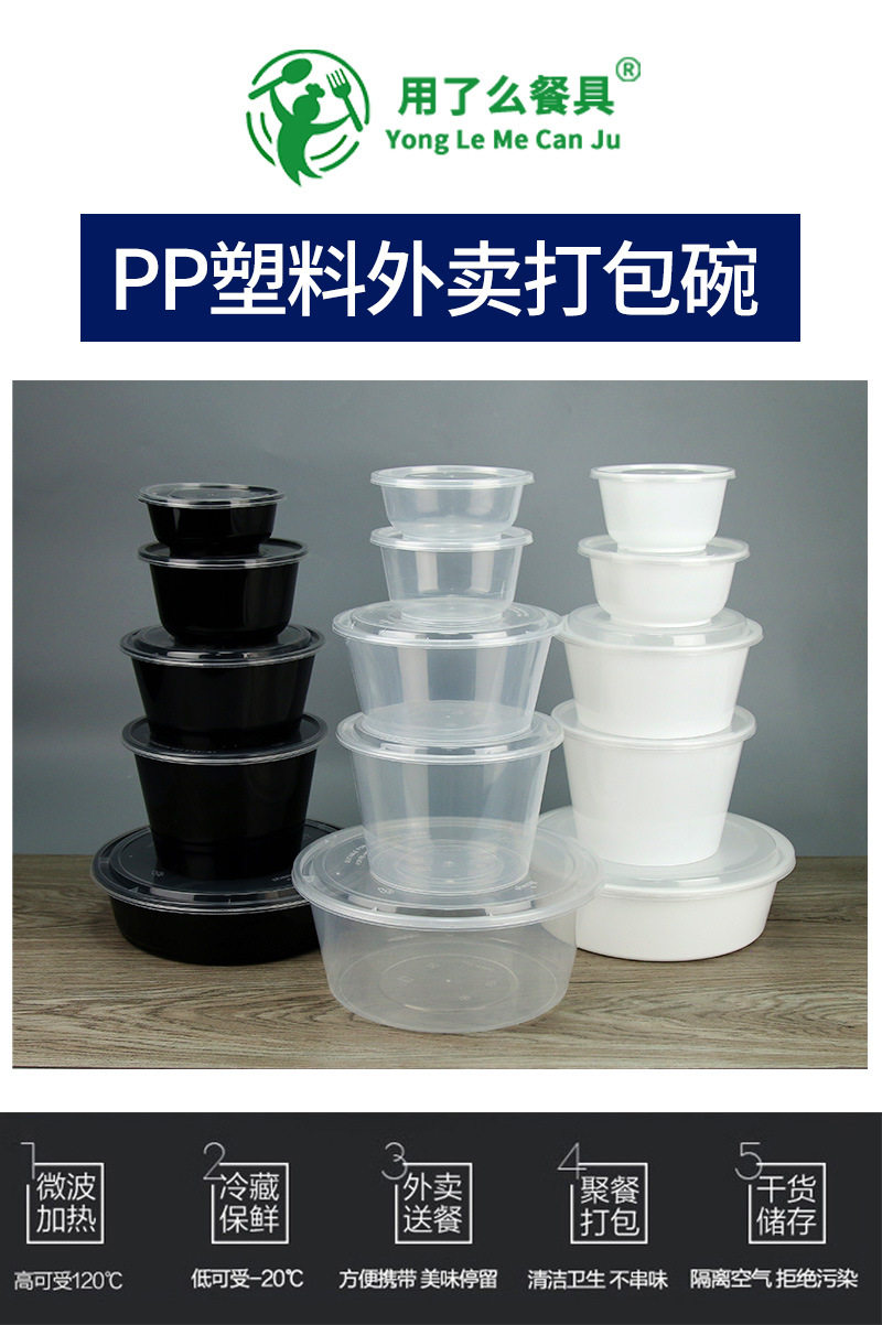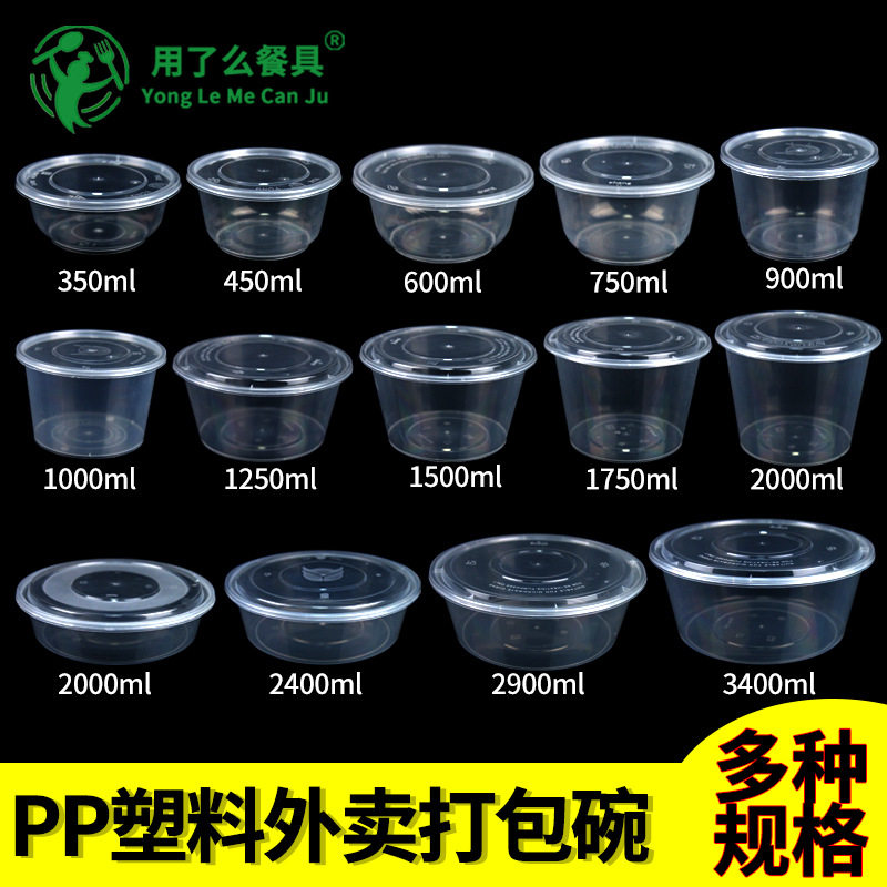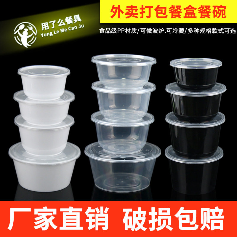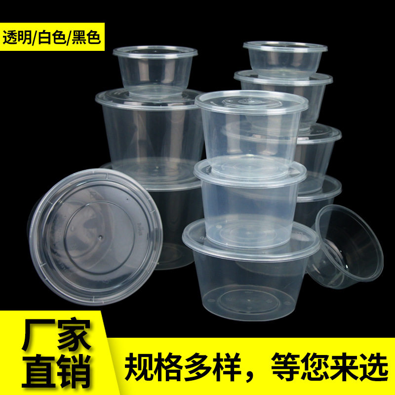 Толстая одноразовая ланч -коробка Круглая миска на вынос PP Пластиковую упаковочную коробку Острый суп -миска с крышкой большой диск с прямой миской