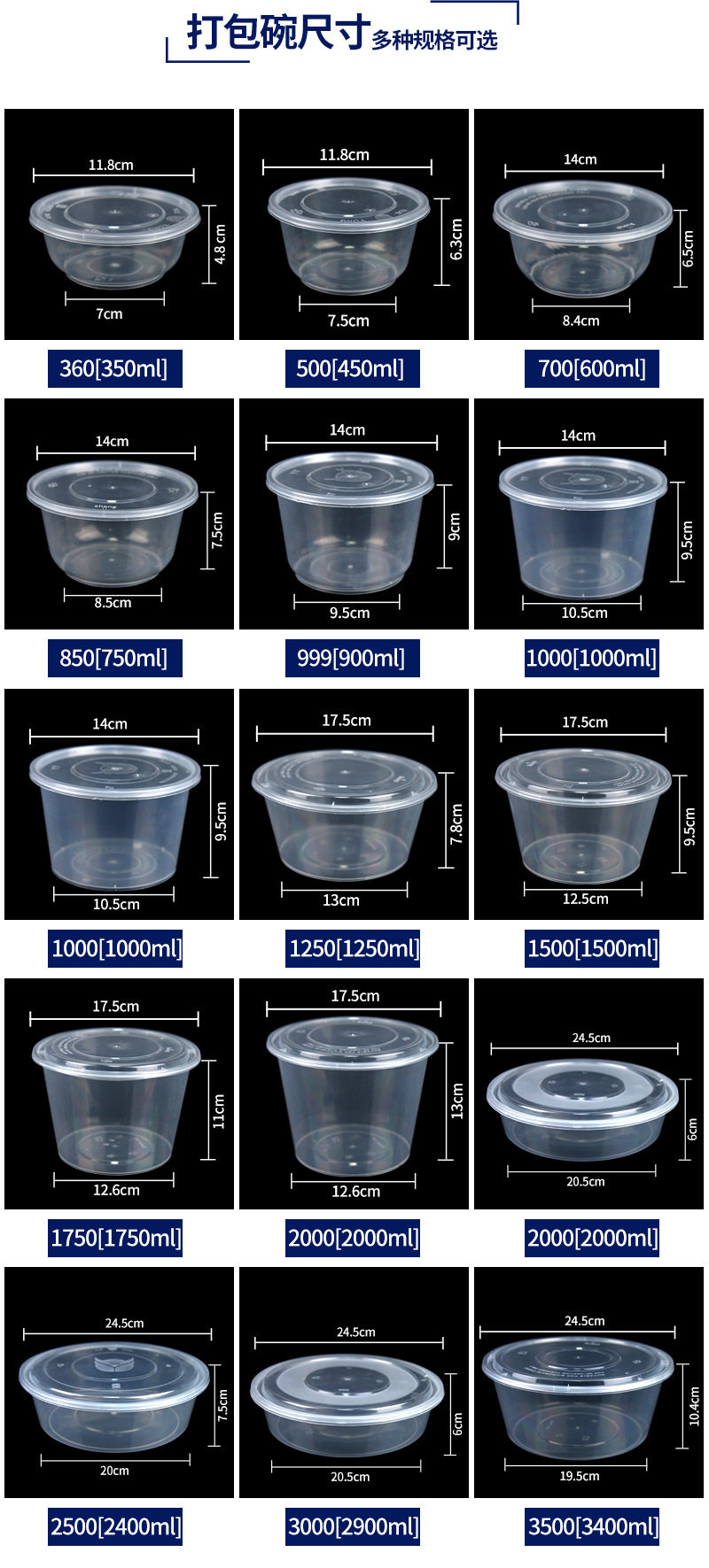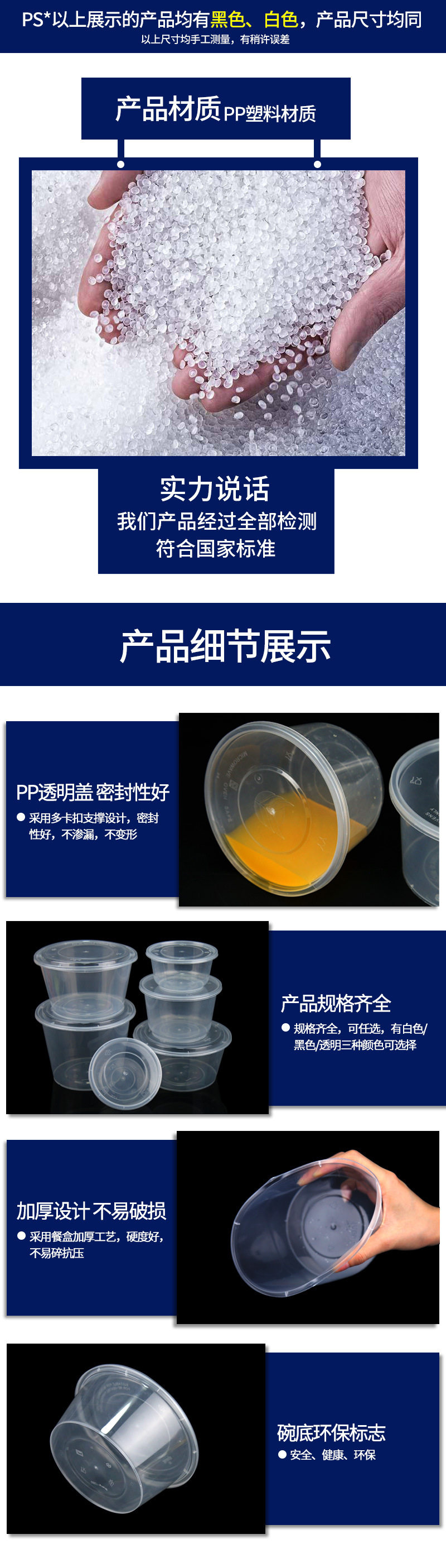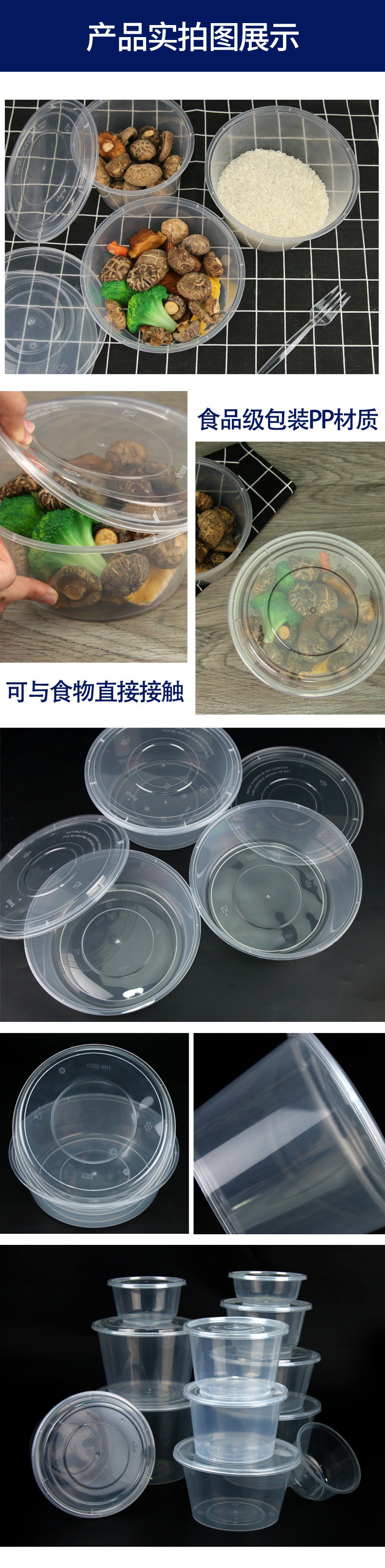 Толстая одноразовая ланч -коробка Круглая миска на вынос PP Пластиковую упаковочную коробку Острый суп -миска с крышкой большой диск с прямой миской