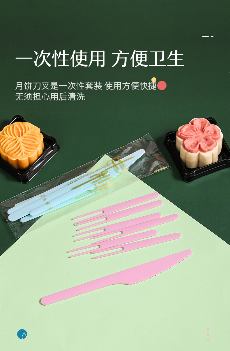 烤乐仕 Одноразовый пластиковый лунный нож для пирога набор 1 нож, 6 вилок 50 комплектов ледяной кожи.