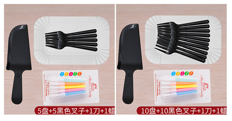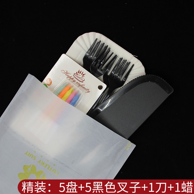 - 5 длинная тарелка 5 черная вилка 1 нож, 1 воск 100 комплектов